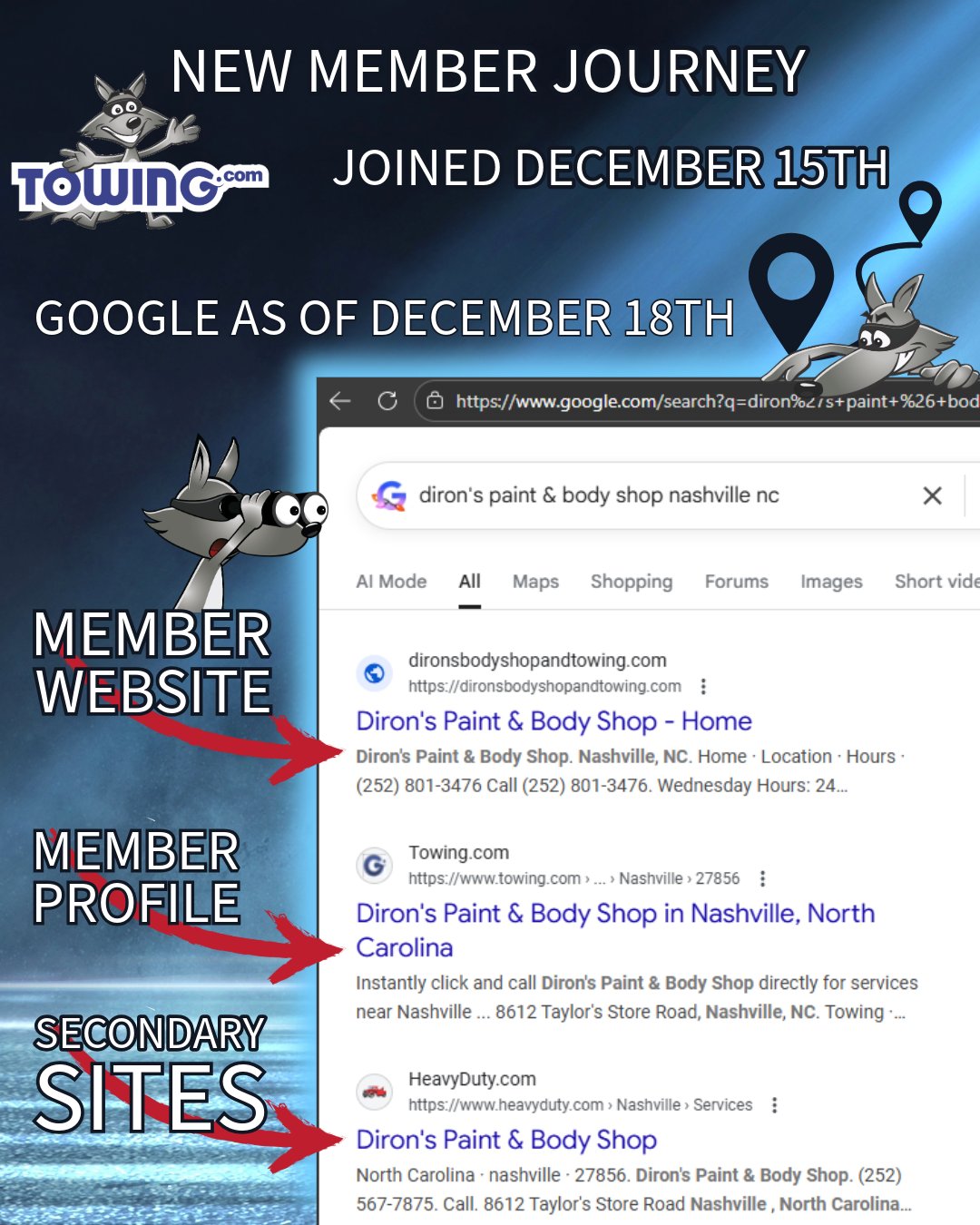 How do we help customers find towing companies directly? The #1 way: We help towing companies show up in Google results so customers can find them directly β without middlemen. This example shows...