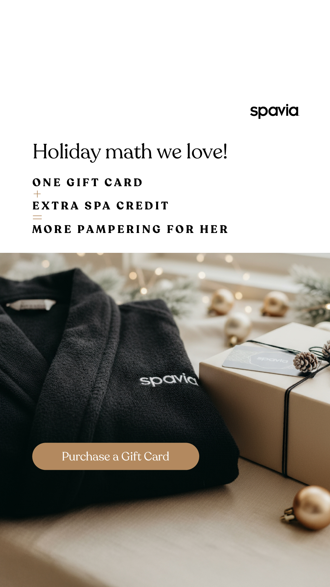 When you choose our holiday gift cards, she gets more time to relax, recenter, and renew at Spavia Sandy. Our gift cards come with more: $100 → +$20 spa credit $150 → +$30 spa credit Surprise her...