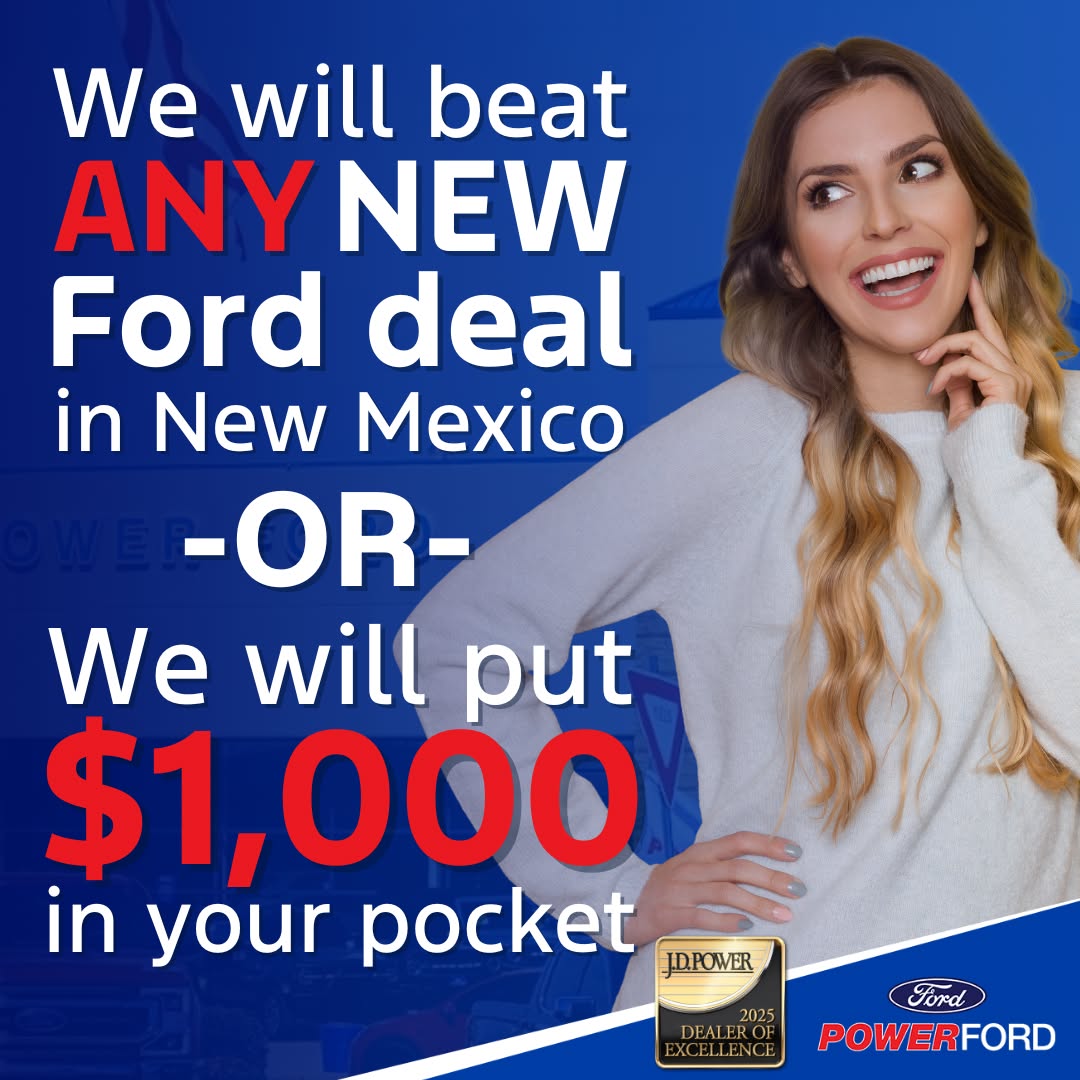 Save BIG at Power Ford! Plus, we'll beat ANY new Ford deal in New Mexico or put $1,000 cash in your pocket! π₯³ β 100K Mile Warranty β Maintenance Included β Your New Ford is Waiting π 2025...