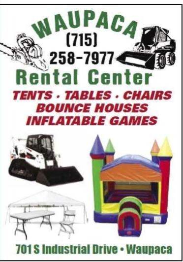 Waupaca Rental Center is here for all your rental needs! We have Tents, Tables, Chairs, Heavy equipment, Lawn care, and much, much more! Come to our NEW LOCATION at 701 S Industrial Drive, or visit...