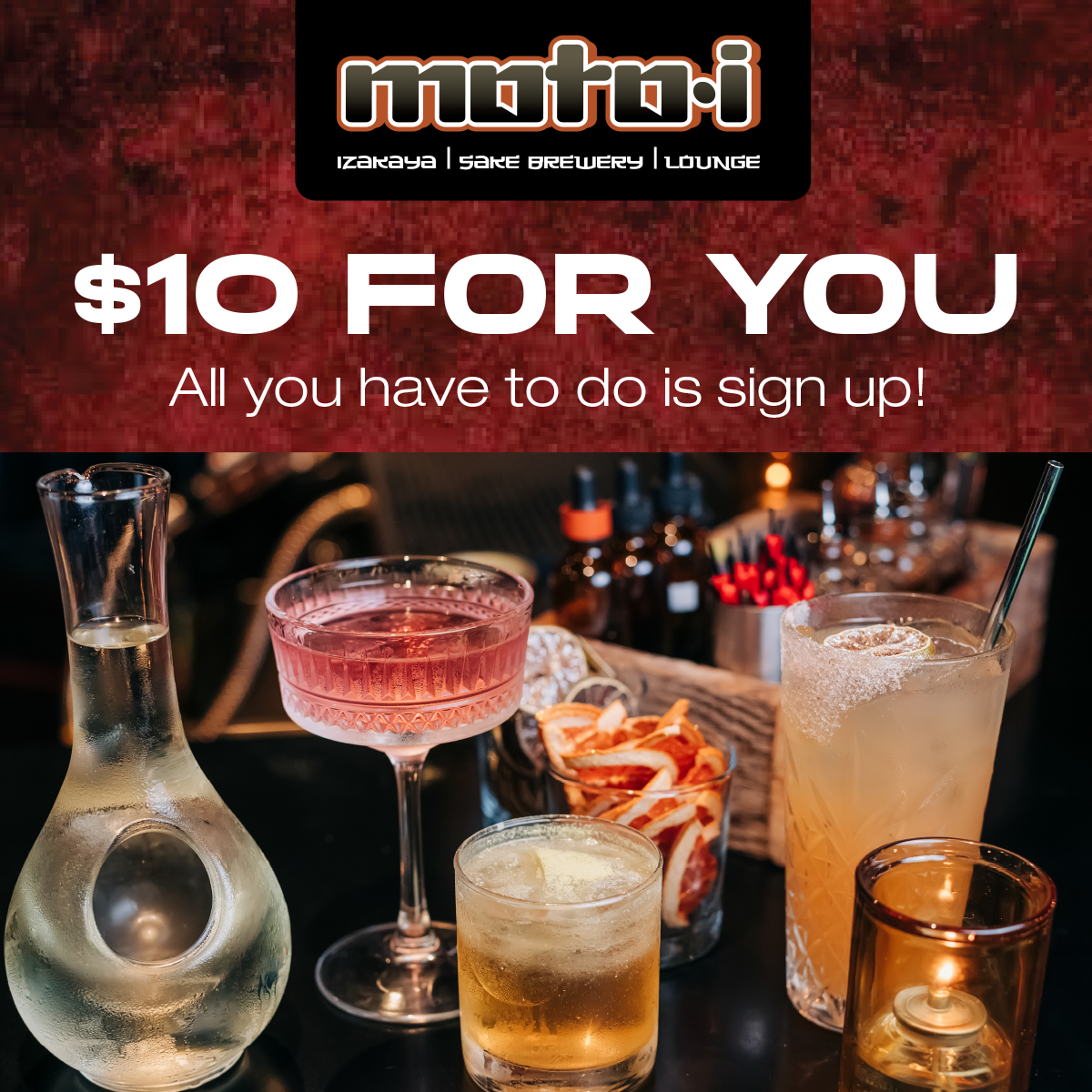 Never been to moto-i? Hereβs a little something to get you started! Sign up now and get $10 off your first visit β whether youβre craving ramen, sake, or just something different. Come for the food,...