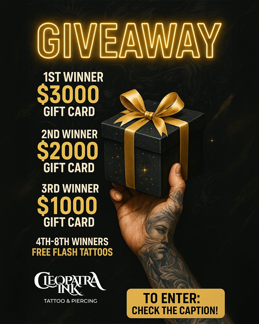 🎉 GIVEAWAY TIME! 🎉 We’re celebrating our amazing community in Baltimore with a MASSIVE tattoo giveaway! 🏆 PRIZES 🥇 1st Winner: $3000 Tattoo 🥈 2nd Winner: $2000 Tattoo 🥉 3rd Winner: $1000...