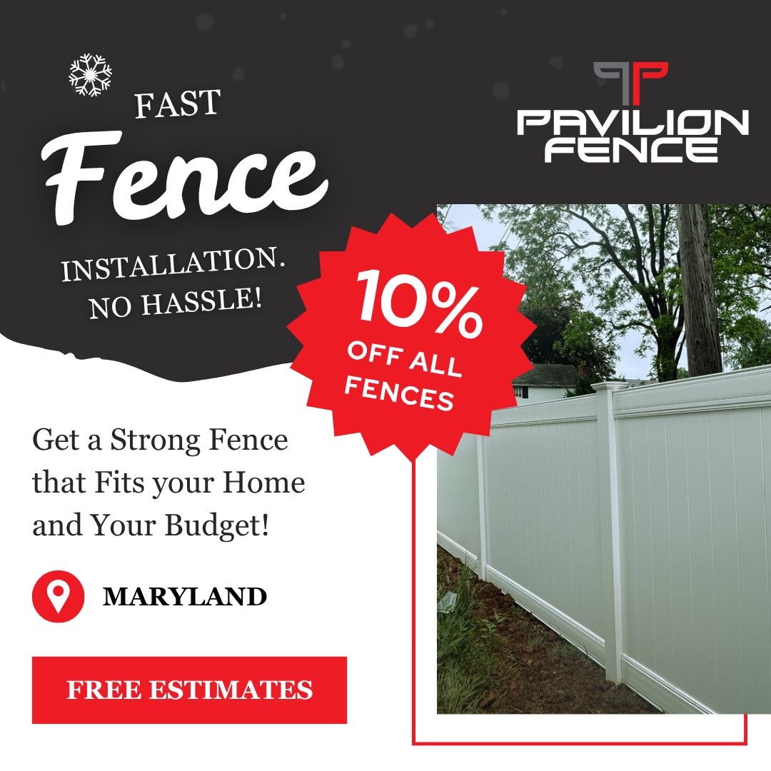 Enjoy 10% OFF all fences with fast Winter installation before Spring schedules fill up. This is the best chance to upgrade your yard with quality craftsmanship at a lower price. Pavilion Fence...