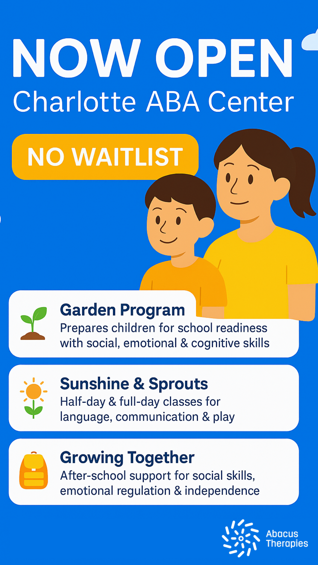 Big News, Charlotte! 🎉 Our brand new ABA center is opening soon! *NO WAITLIST* Is your child ready for school? Do they need support in developing their social and emotional skills? Or maybe a...
