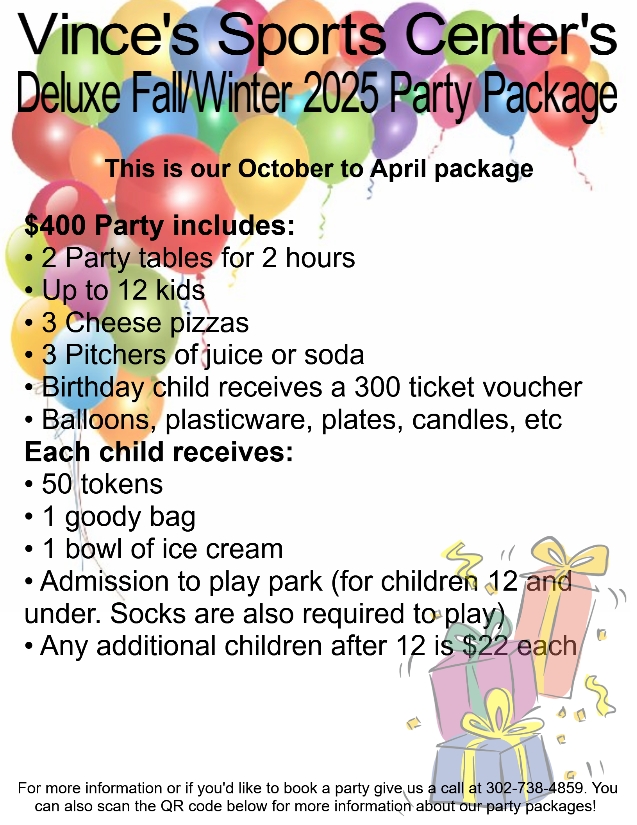 Tired of cleaning up for birthday parties? Let us handle the mess! Come have your child's party at Vince's Sports Center where you don't have to do any cleaning and you can just have fun!. Just...