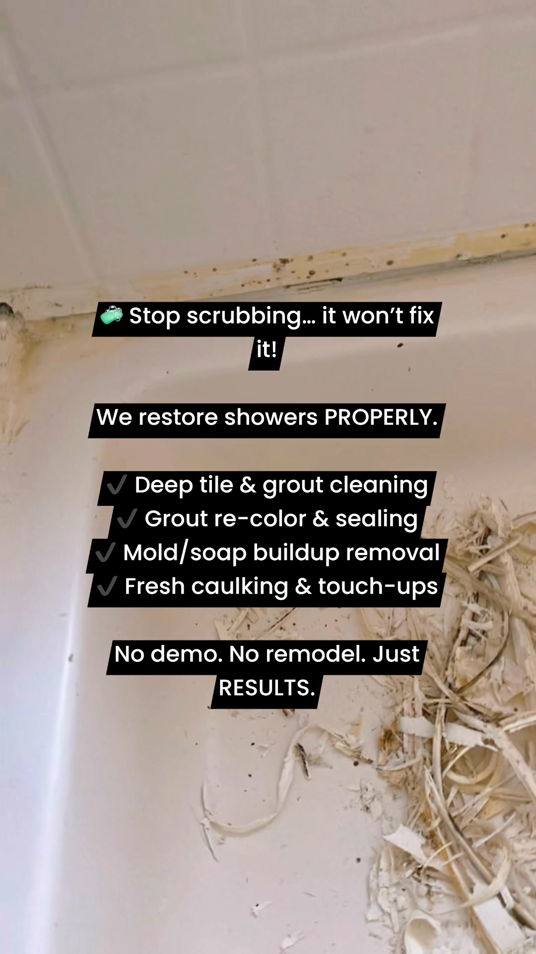 π§½ Moldy grout? Cracked lines? Dull tiles? Cleaning wonβt fix it. Restoration will. We remove old silicone, repair grout, recolor, and bring your tile back to life. π Donβt remodel. Restore & Save...