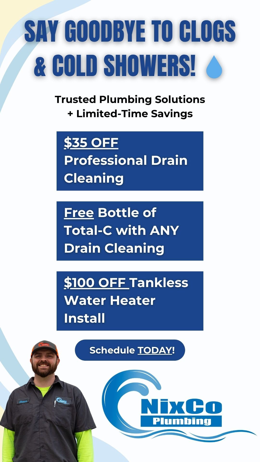šæ Say goodbye to clogs and cold showers ā for good! š§ This month only, take advantage of these limited - time savings from Nixco Plumbing: ā ļø $35 OFF Professional Drain Cleaning ā ļø FREE Total - C...