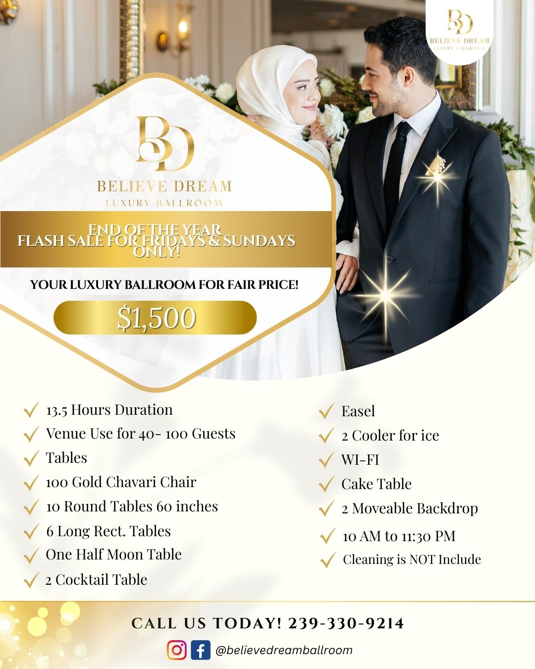 ✨ FLASH SALE ALERT! ✨ Celebrate your special day in luxury — without breaking the bank! 💍🎉 Book Believe Dream Luxury Ballroom for just $1,500 during our End-of-Year Flash Sale (Fridays & Sundays...