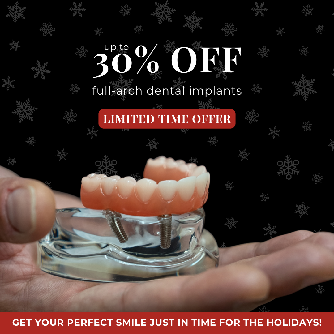 Give yourself the gift of a confident smile! This holiday, get 30% off full-arch dental implants and start your transformation.