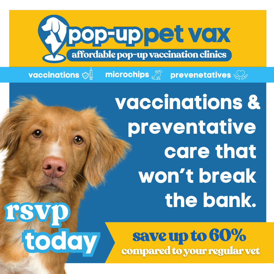 🚐 Pop-Up Pet Vax is in your neighborhood this weekend! Affordable vaccines, microchips & preventatives — up to 60% less than your regular vet. Spots fill fast - RSVP today!