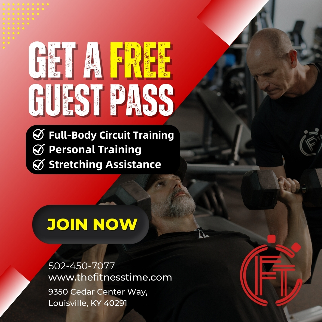 Come try Fitness Time for FREE. Get a Free Guest Pass to see what our 30-minute circuit, friendly staff, and neighborhood gym feel are all about. No pressure. No sales pitch. Just a great workout.