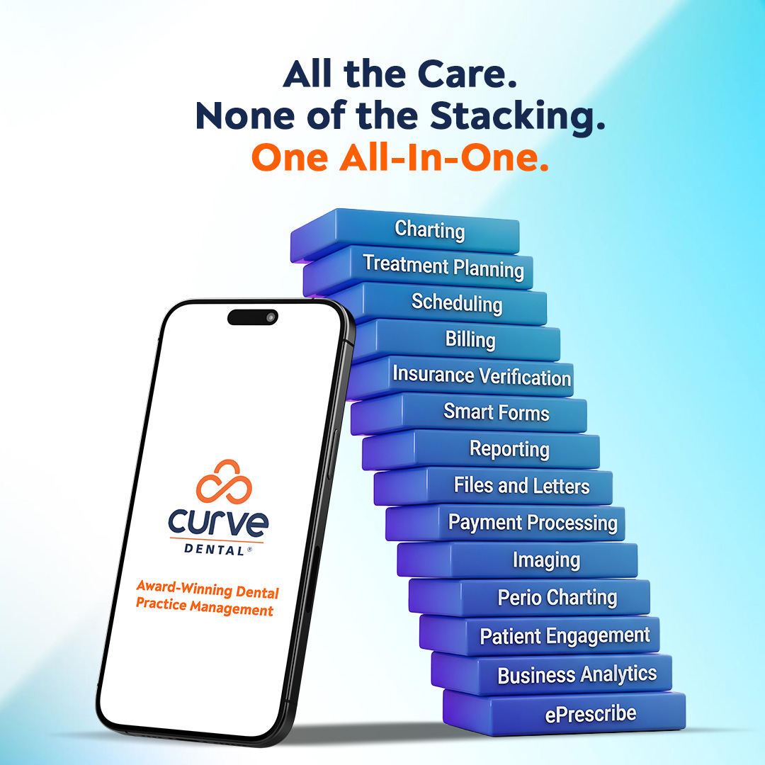 Your dental practice doesn't need another tool to manage. Curve Dental is a system that works an all-in-one platform that's ready day one.