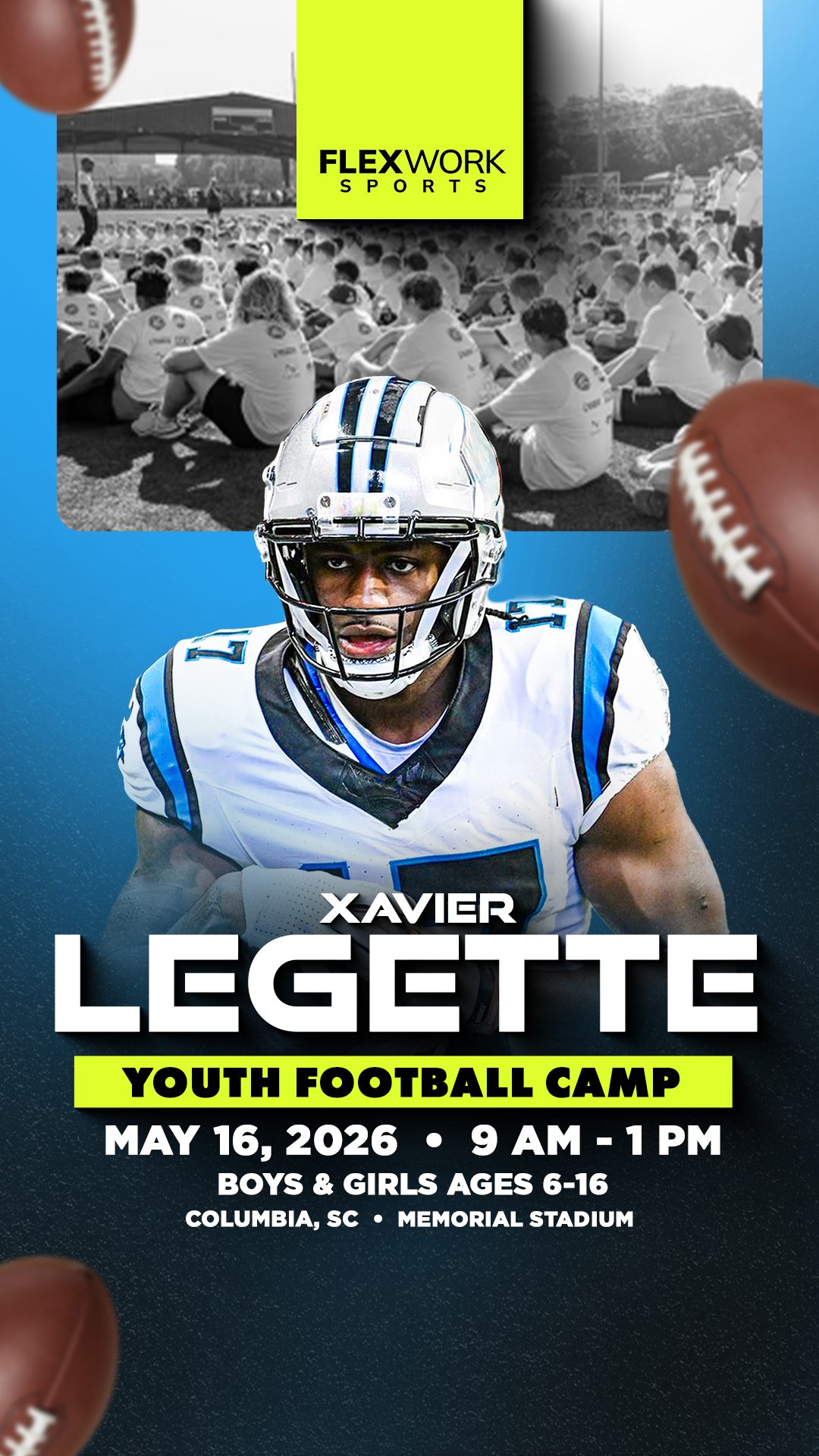 Excited to announce Carolina wide receiver Xavier Legette will be in Columbia to host a Youth Football Camp! The camp is for boys ages 6-16 and will take place on Saturday, May 16th at Memorial...
