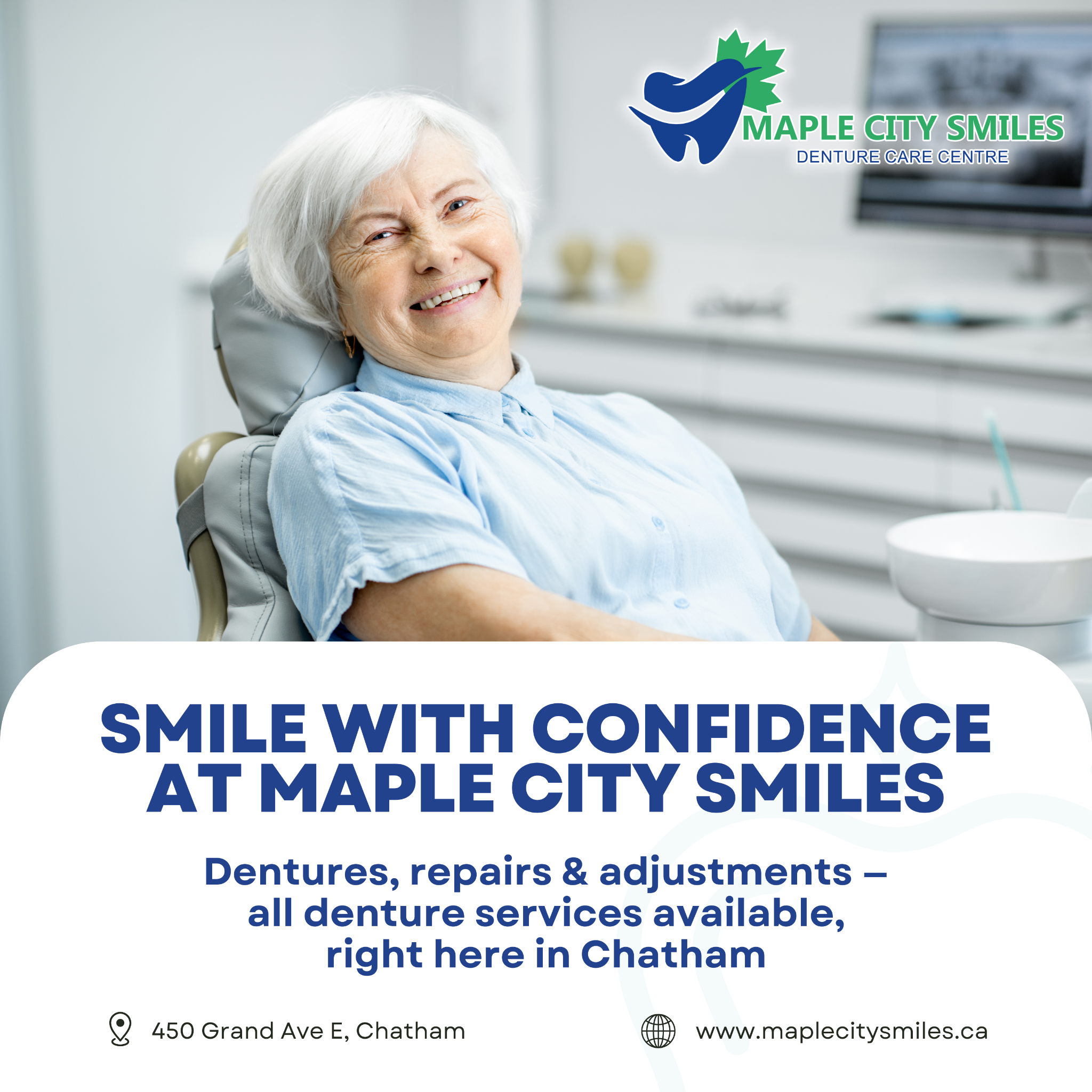 Smile with confidence at Maple City Smiles! We create, repair, and fit dentures, all made right here in Chatham. Whether youβre coming in for a new set, a quick repair, or a free consultation, our...