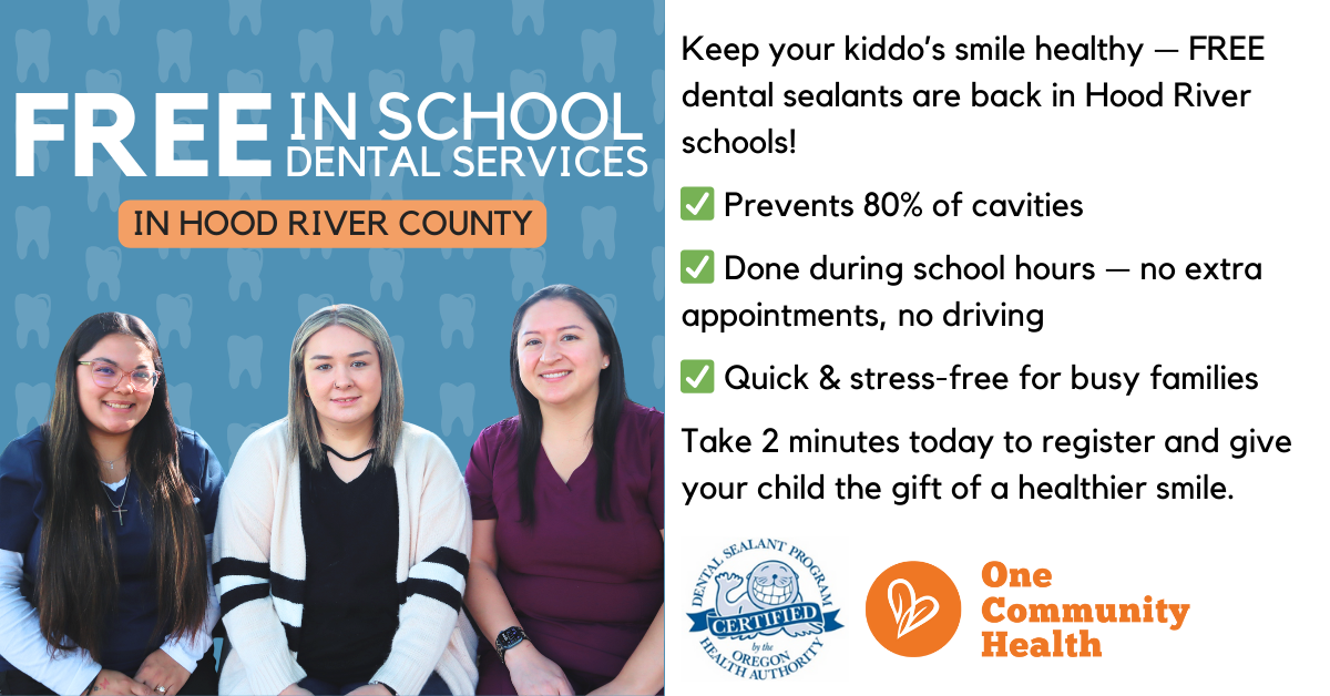 Donβt let cavities sneak in! π¦· Free dental sealants are back at Hood River schools. β 80% cavity prevention β Applied at school β zero extra appointments β Quick and easy for busy families Register...