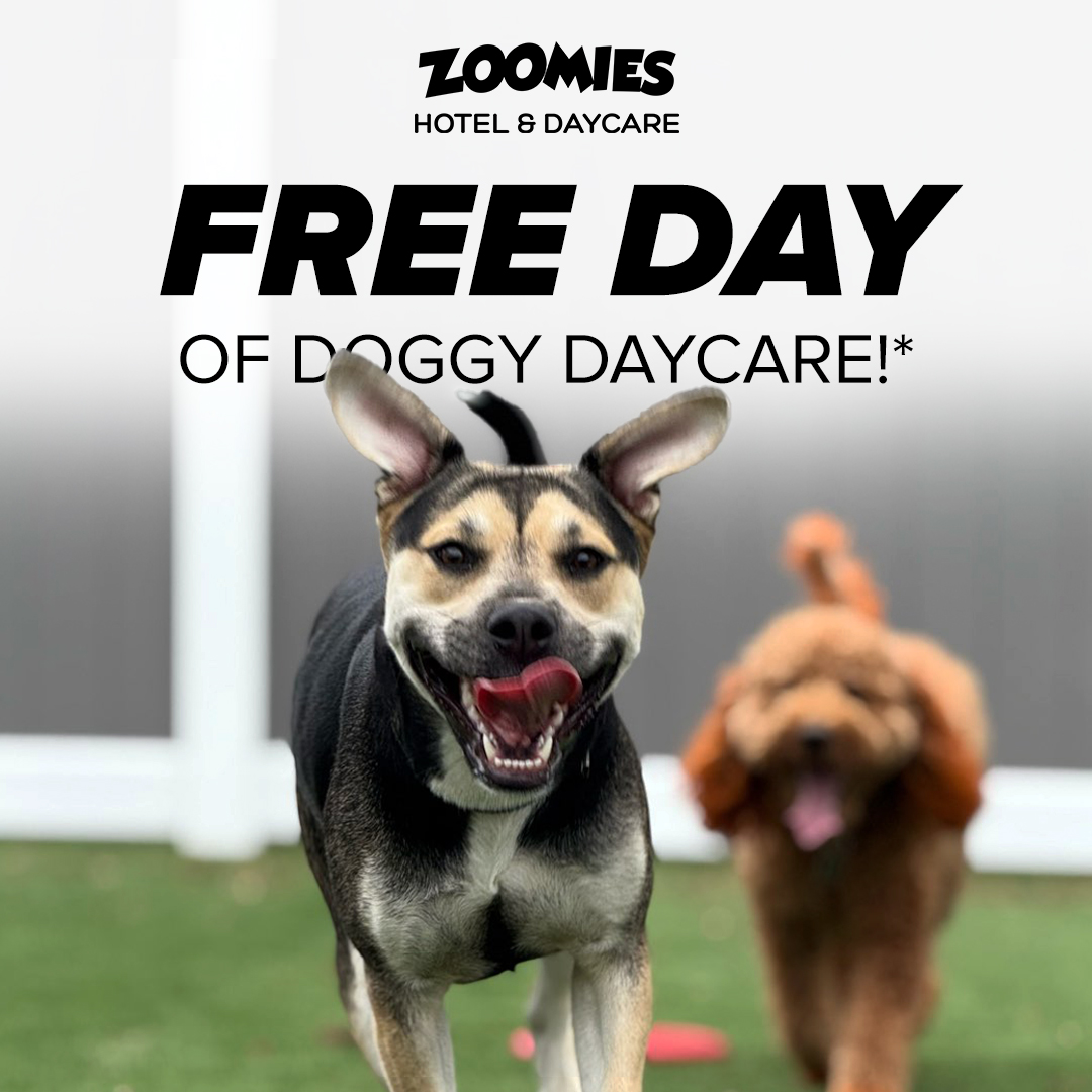 At ZOOMIES Pet Hotel, your dog’s first day of luxury daycare is completely FREE. That means social play, loving supervision, and tons of tail wags — all with no obligation. Whether they’re a social...
