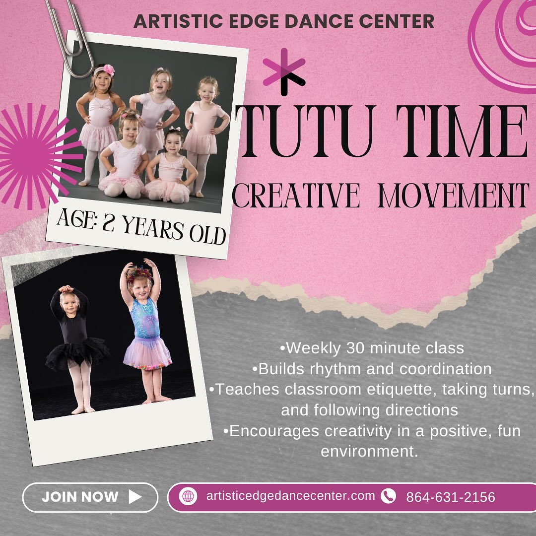 ✨ Tutu Time Creative Movement ✨ Perfect for your tiny 2 year old dancer ! 💕 Watch your little one twirl, jump, giggle, and shine in this sweet introduction to dance. Our Tutu Time class builds...