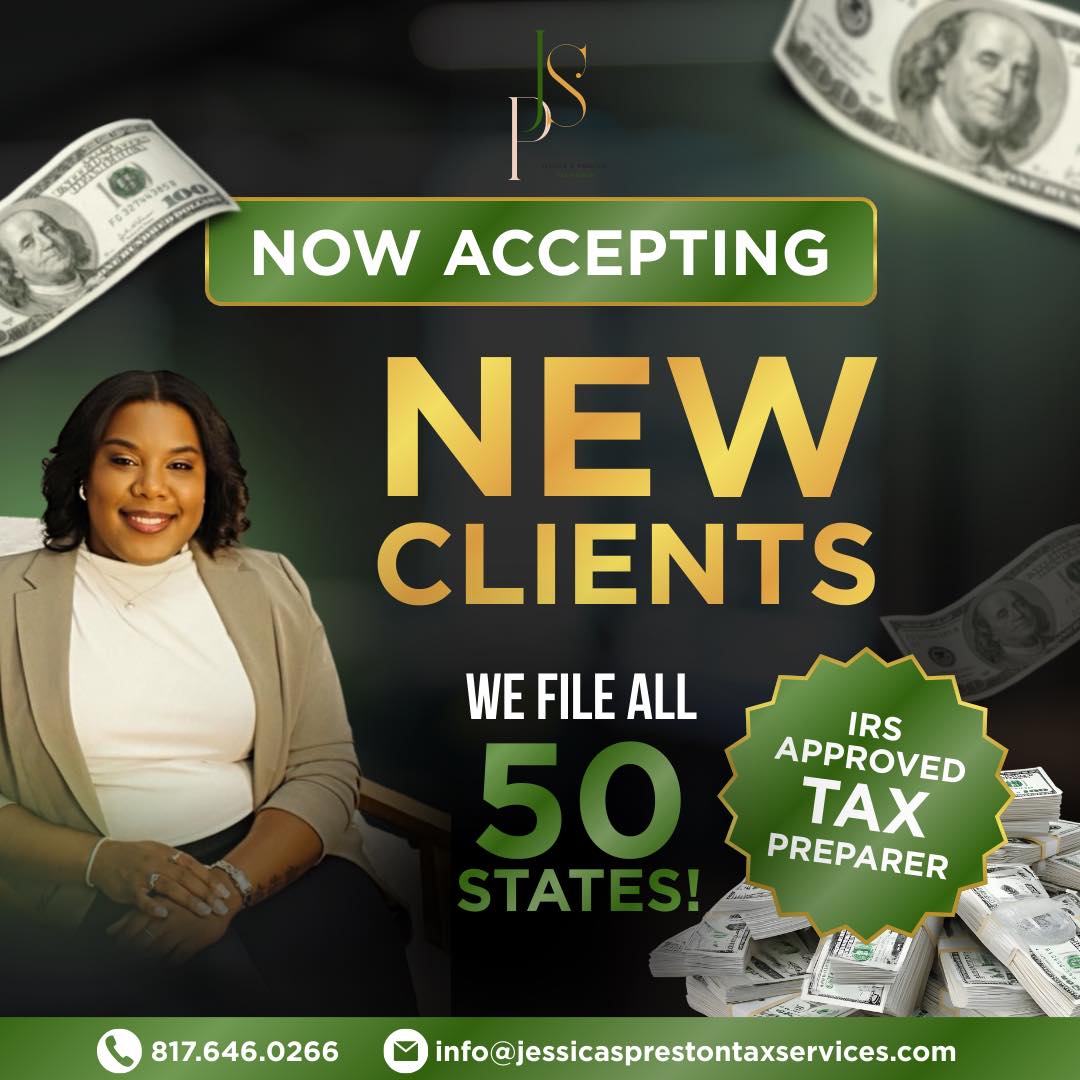 π Now Accepting New Clients for the 2026 Tax Season! π Jessica S Preston Tax and Notary Services is officially opening our VIP Waitlist β and my team is READY to serve you! πΌβ¨ Whether youβre...