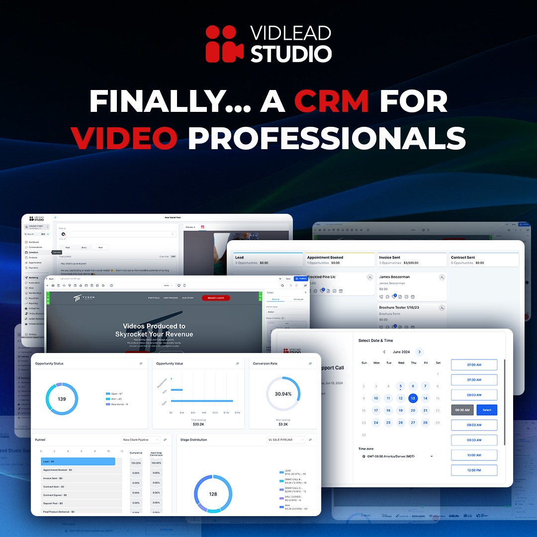 Looking for a CRM specifically for Video Professionals? Welcome to Vidlead Studio: - Websites & Funnels - Full CRM (Emails, Texts, FB and IG DM's, WhatsApp) - Automations - Invoices, Contracts,...