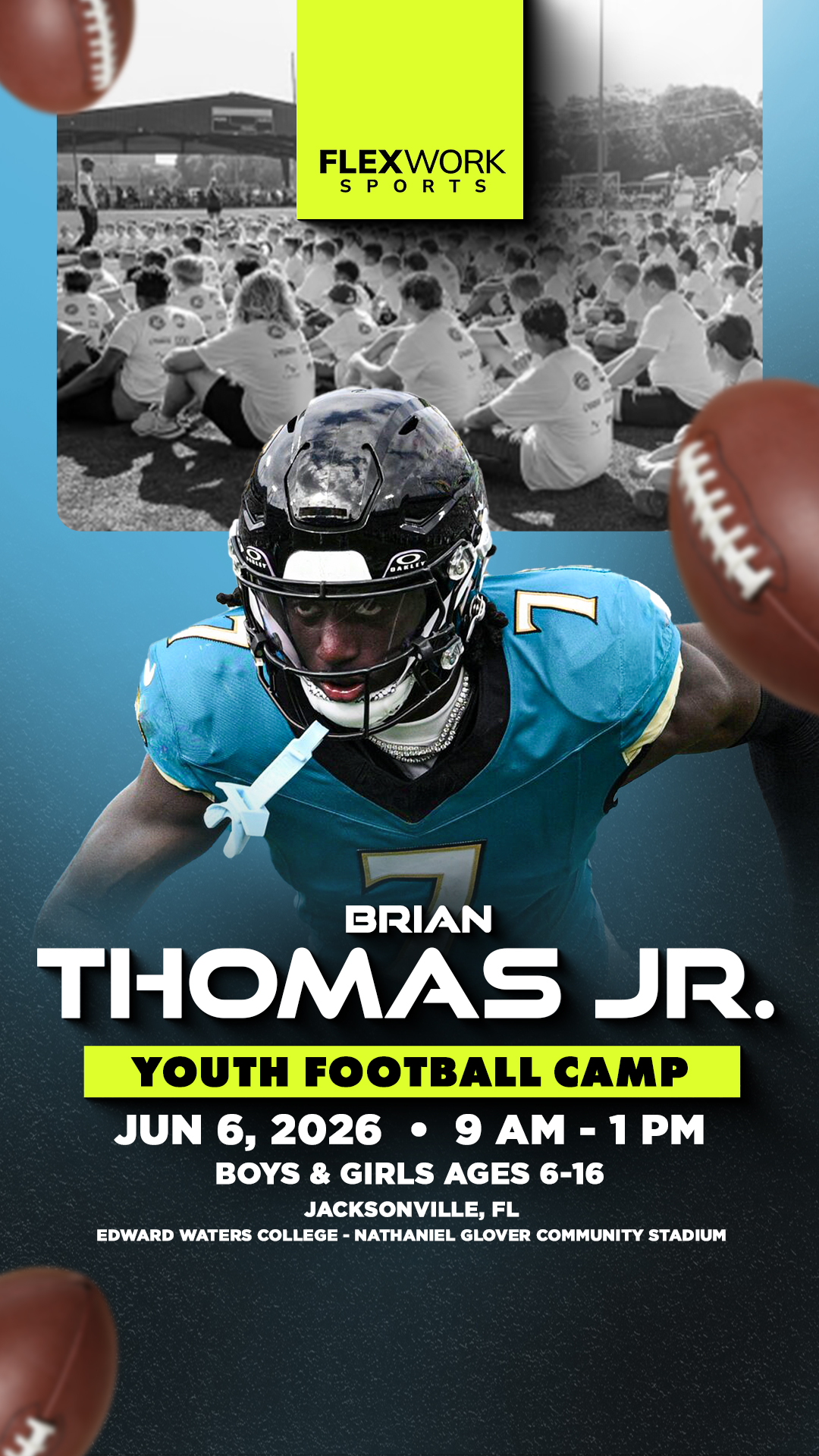 Excited to announce Jacksonville wide receiver Brian Thomas Jr. will be in Jacksonville to host a Youth Football Camp! The camp is for athletes ages 6-16 and will take place on Saturday, June 6th at...