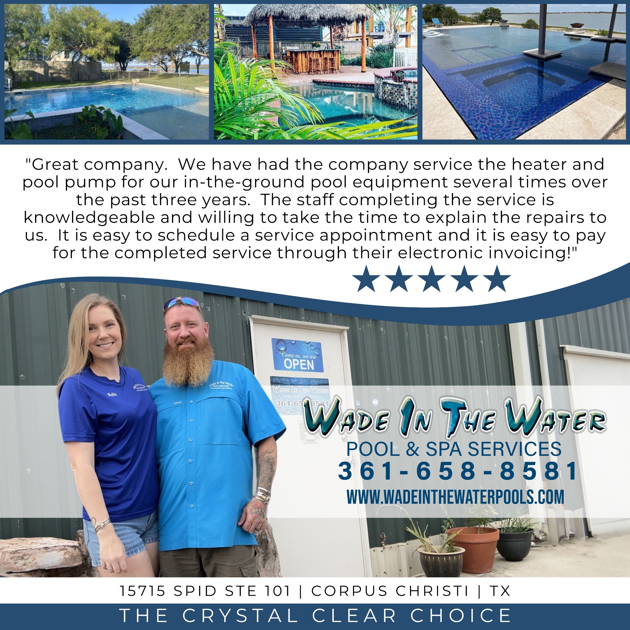 Dive into relaxation with Wade In The Water Pool & Spa Services! Your neighborhood's go-to for pristine pools and spas since 2010. From weekly maintenance to repairs and remodeling, we've got you...