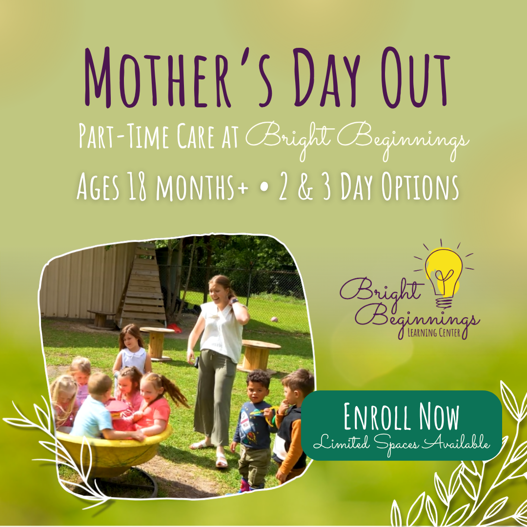 Looking for part-time care thatโs full of fun and learning? ๐ Bright Beginningsโ Motherโs Day Out program offers days filled with structured activities, lunch, and nap time for children 18 months...