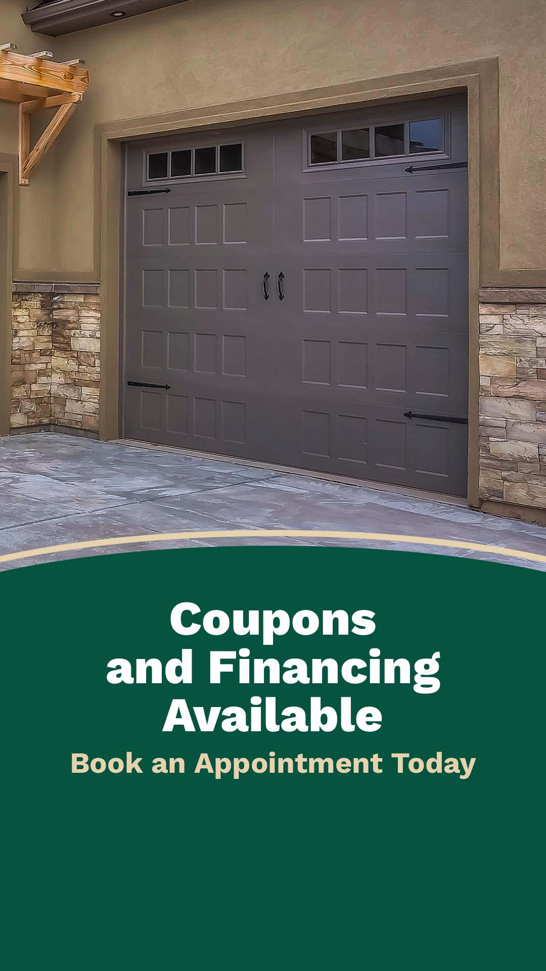 Save today, pay later, and keep your garage door running strong. Contact us for current coupons and financing details before booking your next service.