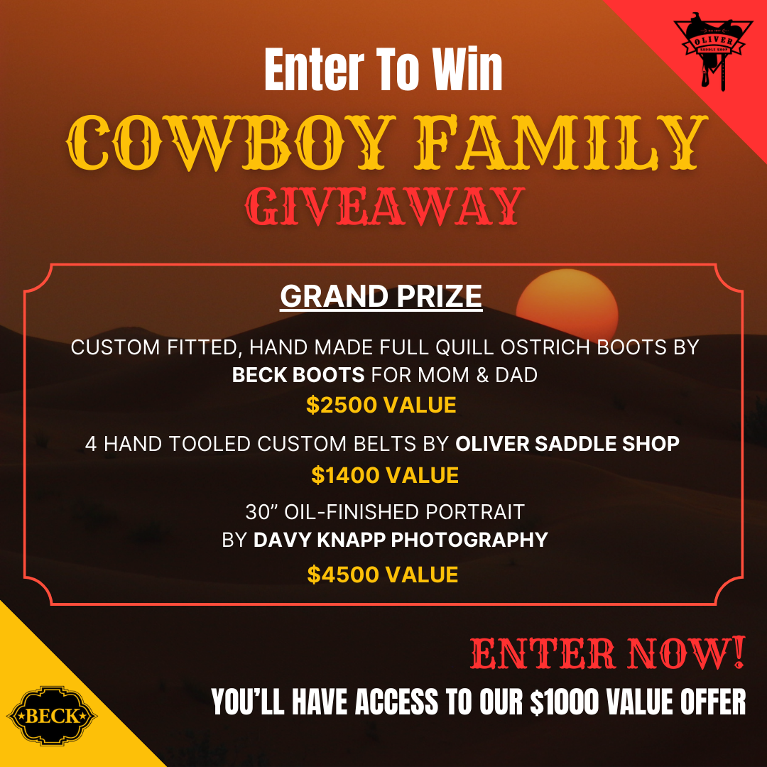 πΊπΈ Win the ULTIMATE Cowboy Package worth $8,400! π€ One Grand Prize Winner, One Second Prize Winner, PLUS Access to our $1000 Offer! π One Grand Prize Winner Will Receive: π’ Custom-Fitted Beck...