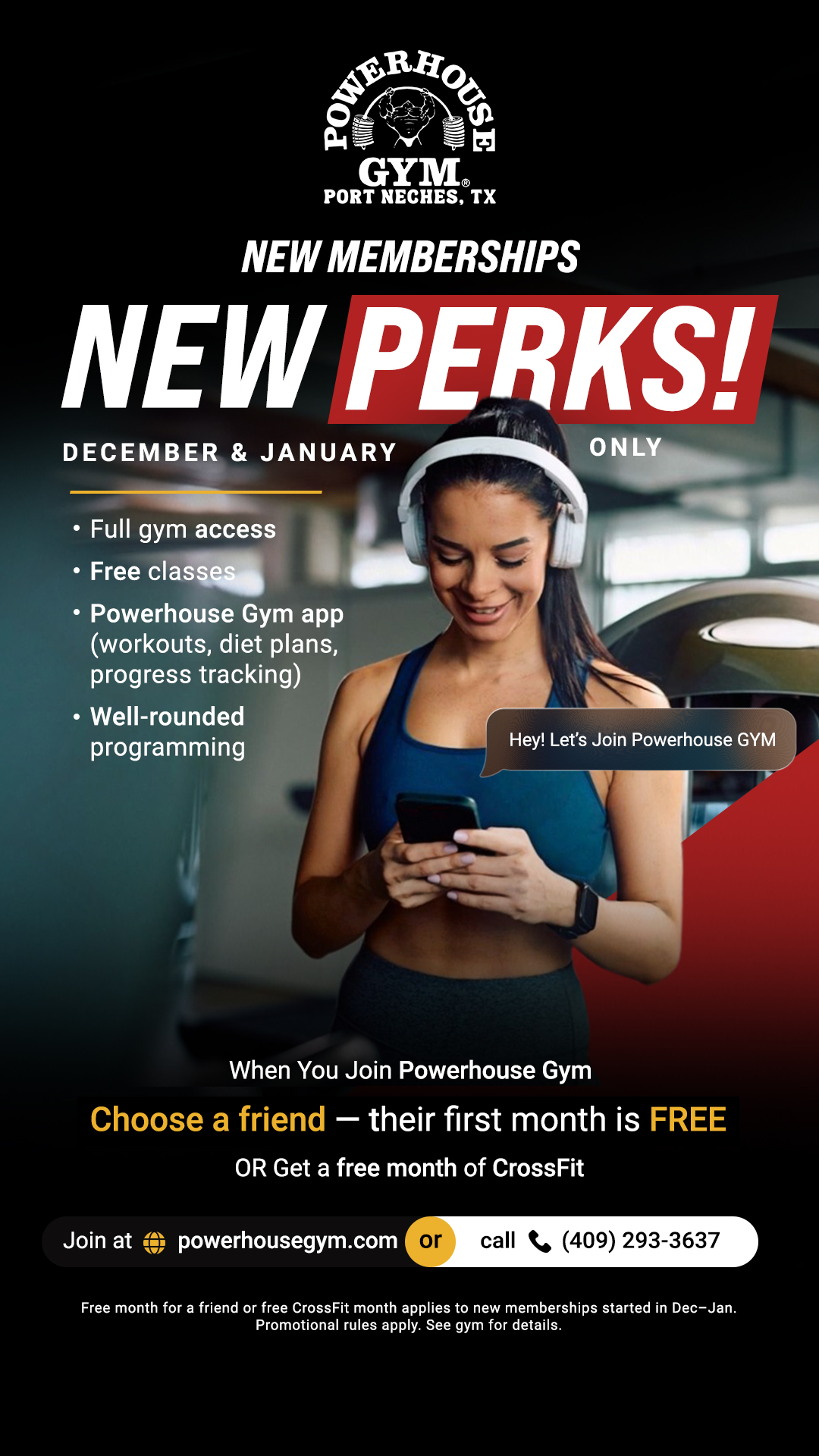 New memberships—new perks! Dec–Jan: Friend’s first month free or your first month of CrossFit free.