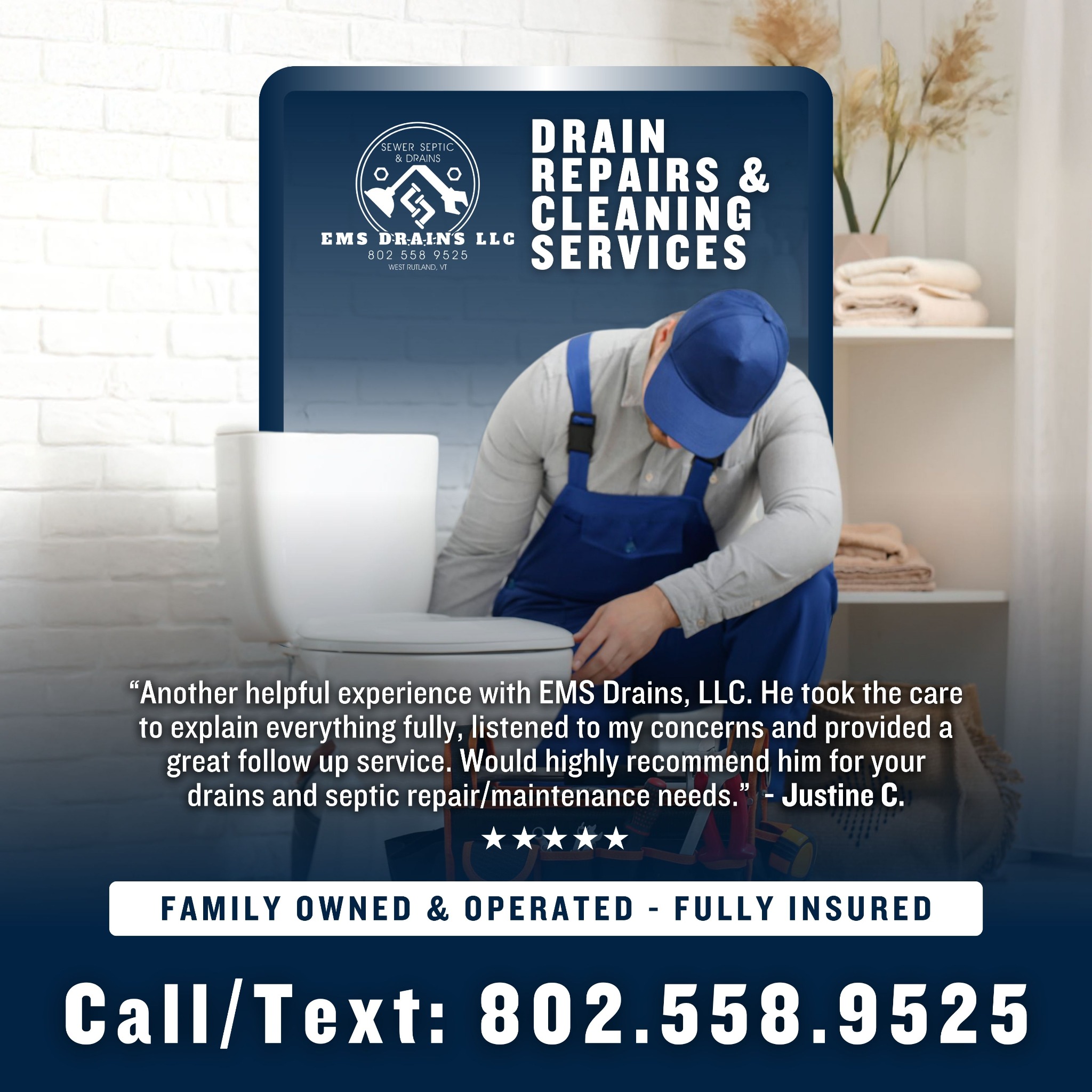 Flow is our thing! Whether you need repairs, cleaning, or flow restored, EMS Drains has you covered. Give us a call today or text today for your service!