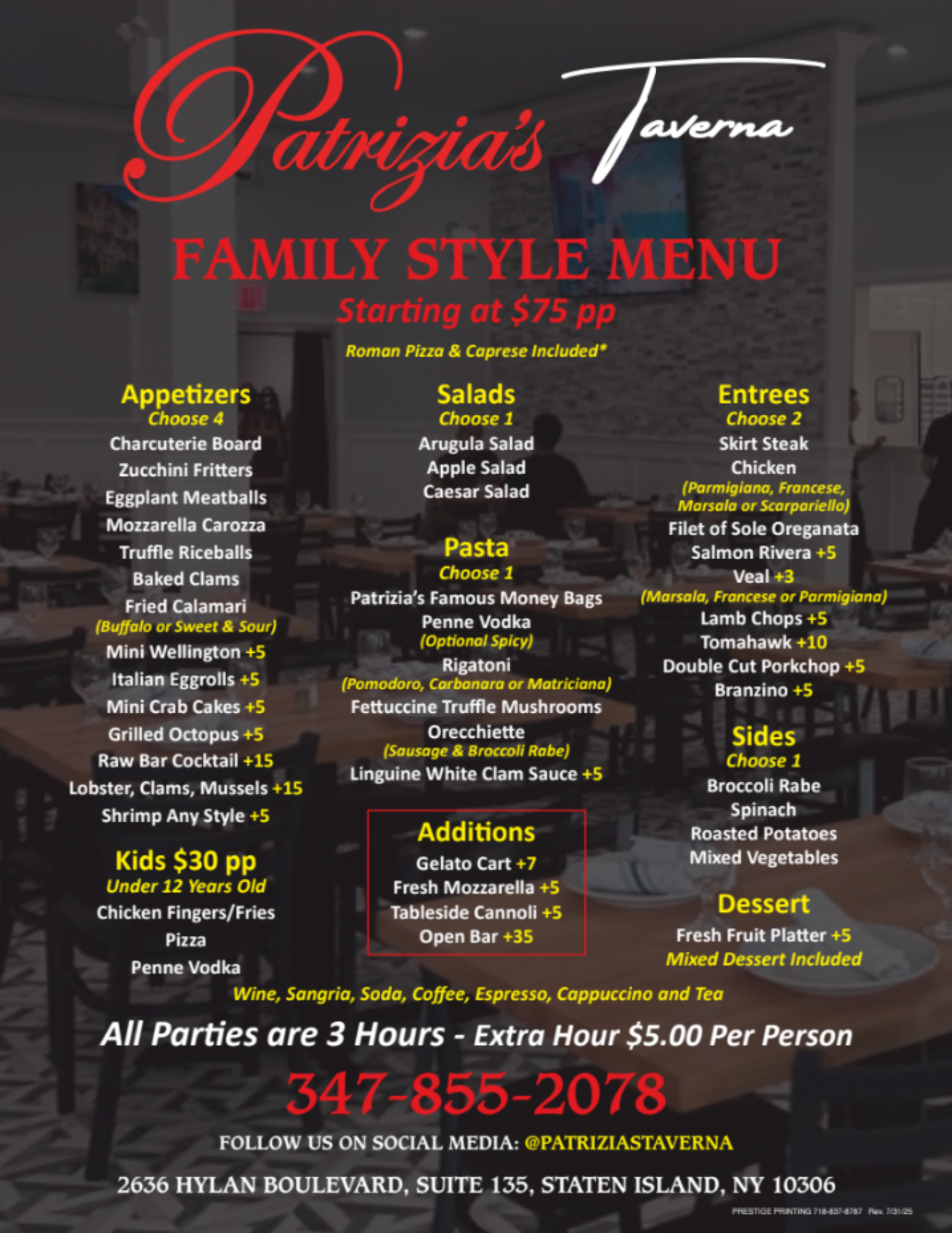 Planning a Staten Island event? Make it legendary. π₯ Whether it's a 75-person private dinner or a 120-guest bash, Patriziaβs Taverna is the gold standard for celebrations. Our Family Style menu...