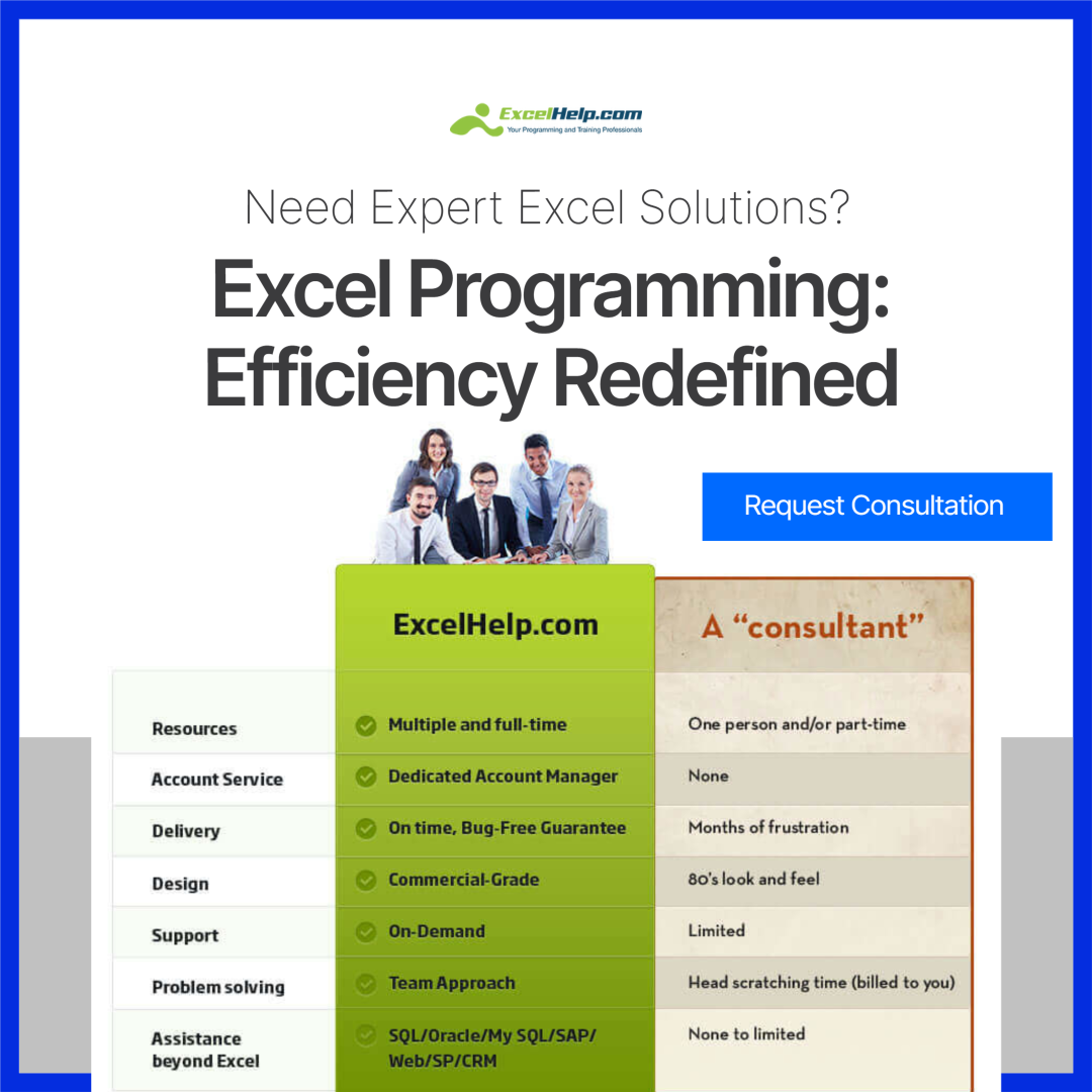 Book a Free Consultation with Microsoft Excel Experts. ✅ Small & Large Excel Projects ✅ Excel Project Design & Prototyping ✅ On-Demand Excel Support