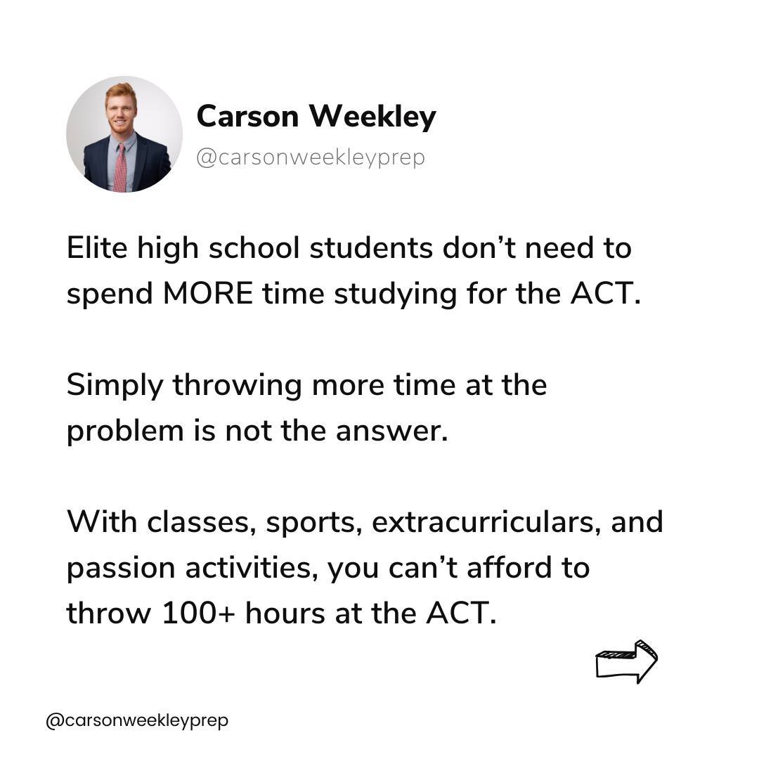 You don’t need to spend more time studying for the ACT. More time does NOT necessarily mean a better outcome. You need a system that allows you to work efficiently for just a few hours per...