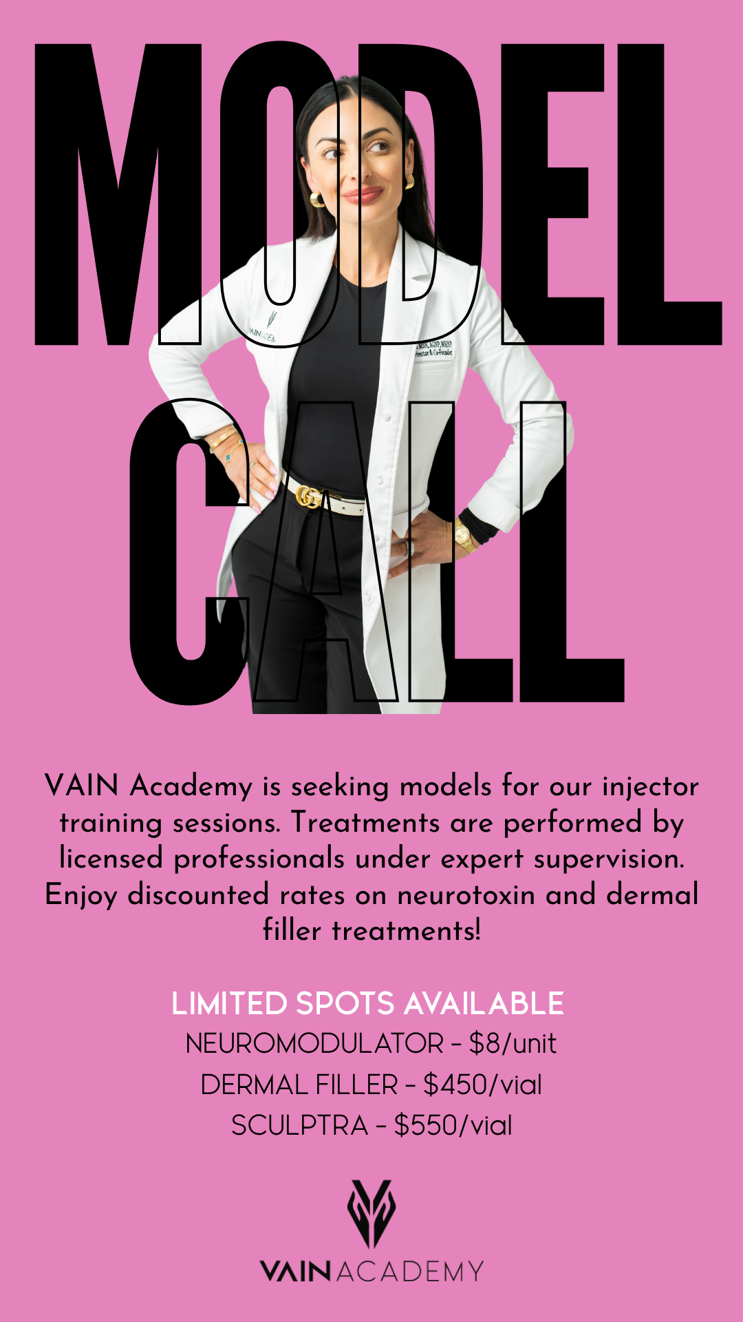 Want to look refreshed for less? Become a model for VAIN Academy training courses! 💉 Receive neurotoxin and dermal filler treatments at a discounted rate, administered by medical professionals...