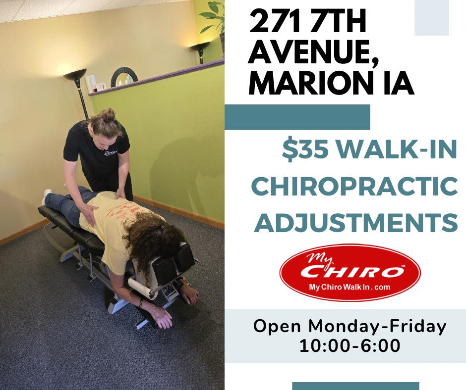 ⭐️ Marion Iowa! Convenient, Affordable, Walk-in Chiropractic! ⭐️ Only $35! Same price for new and existing patients. Walk in today!