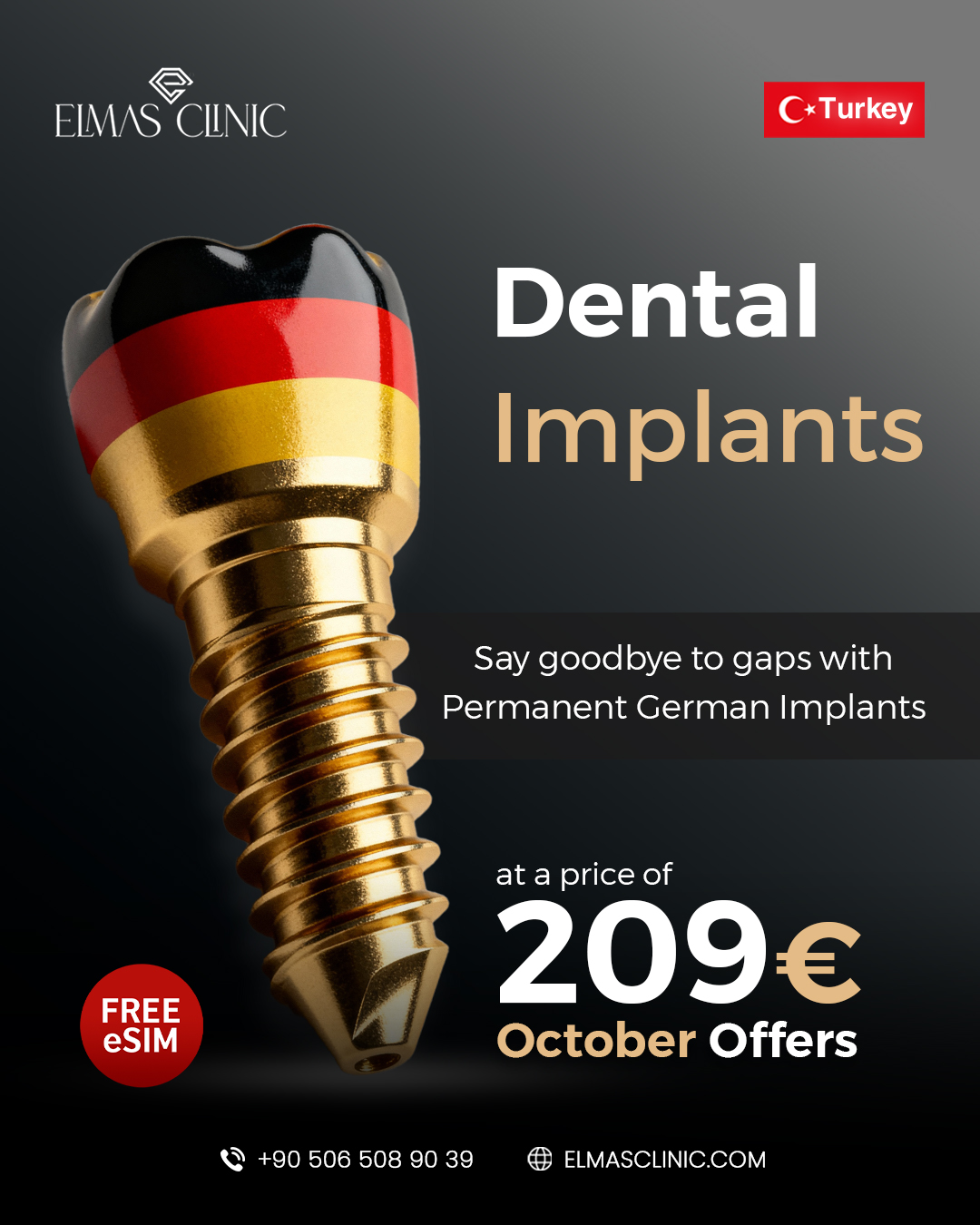 Don’t let a missing tooth affect your smile. Elmas Clinic provides German-made implants with: 🔹 Strong, long-lasting stability 🎁 Free eSIM 💶 Price: €209 only ✨ A single implant brings back your...