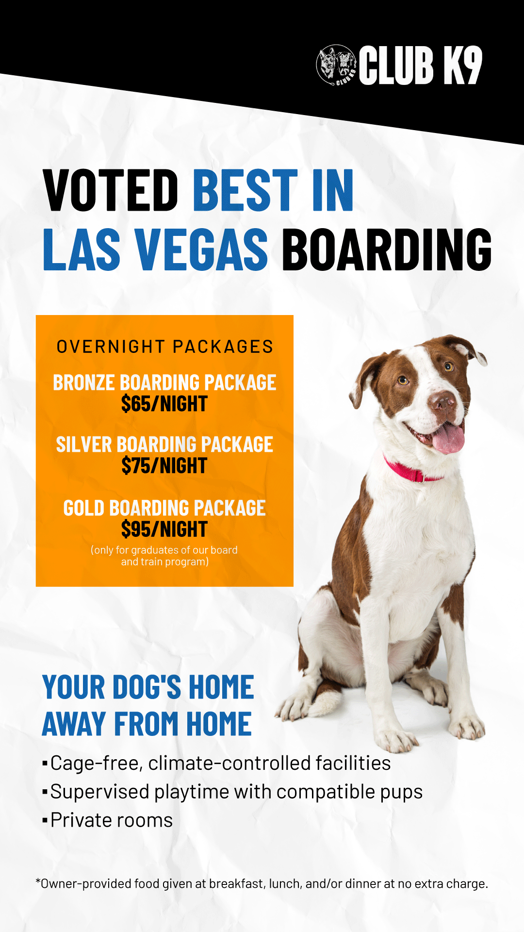Planning a vacation or work trip and not sure what to do with your furry friend? Bring them to Club K9 for daily one-on-one play sessions, private suites, and all the personal attention they deserve....