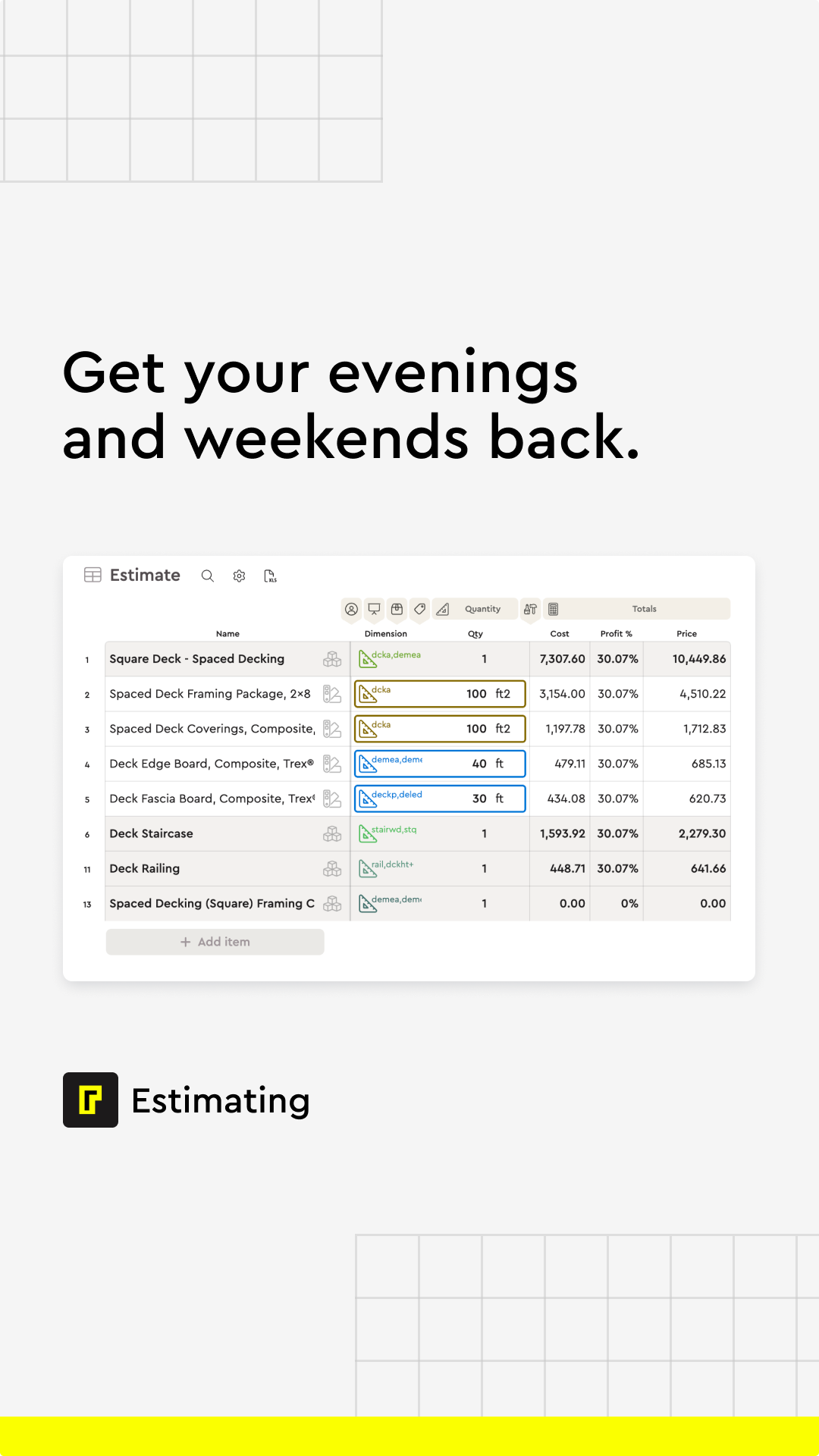 Automated material lists & budget
