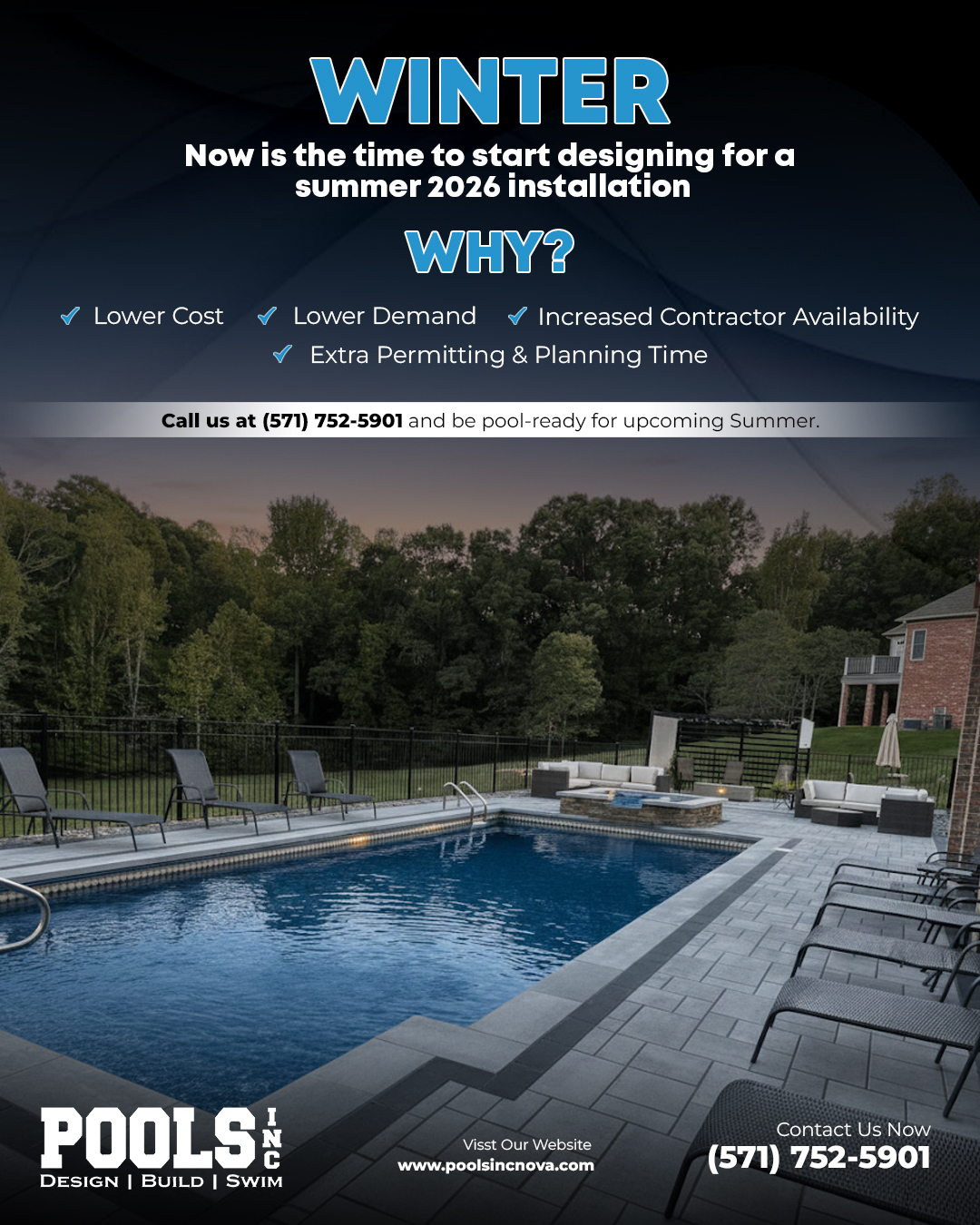 Secure Your Early Summer Pool Construction Spot! πββοΈπ Weβll handle all VA/NOVA Permits & paperwork this winter for a guaranteed April Build Start. βοΈπ β Lock in Price, Beat The Rush πΈ β Ample...