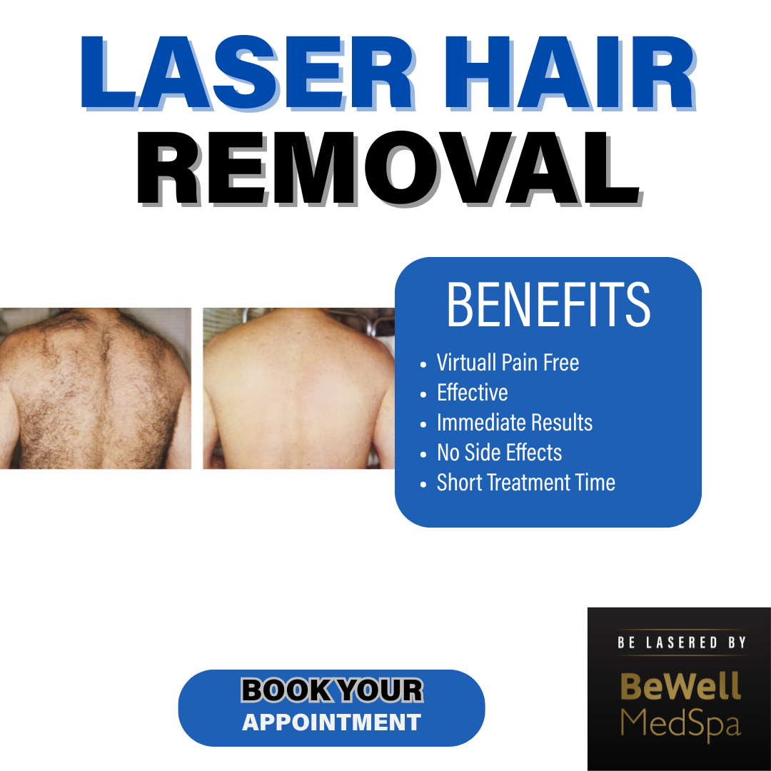 Say goodbye to ingrown hairs! 🚫 Get your first laser hair removal session free at BeWell MedSpa. Permanent results and lifetime guarantee. Book now!