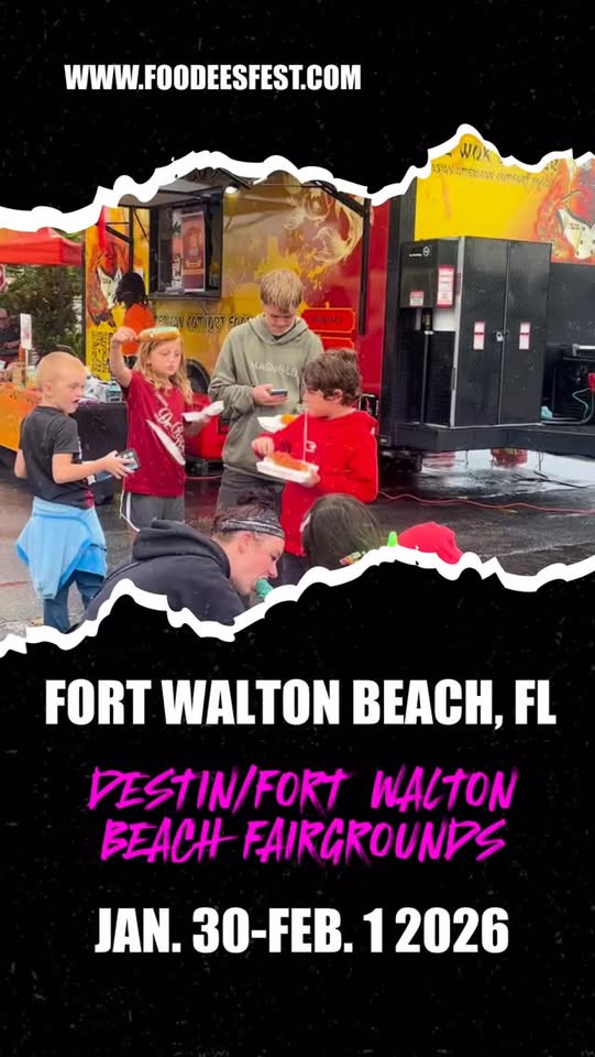 ✨ Fort Walton Beach, we’re comin’ in HOT!✨ Destin/Fort Walton Beach Fairgrounds | Jan 30–Feb 1 FOODEESFEST is rolling into the Destin/Fort Walton Beach Fairgrounds Jan 30–Feb 1 for a full weekend of...