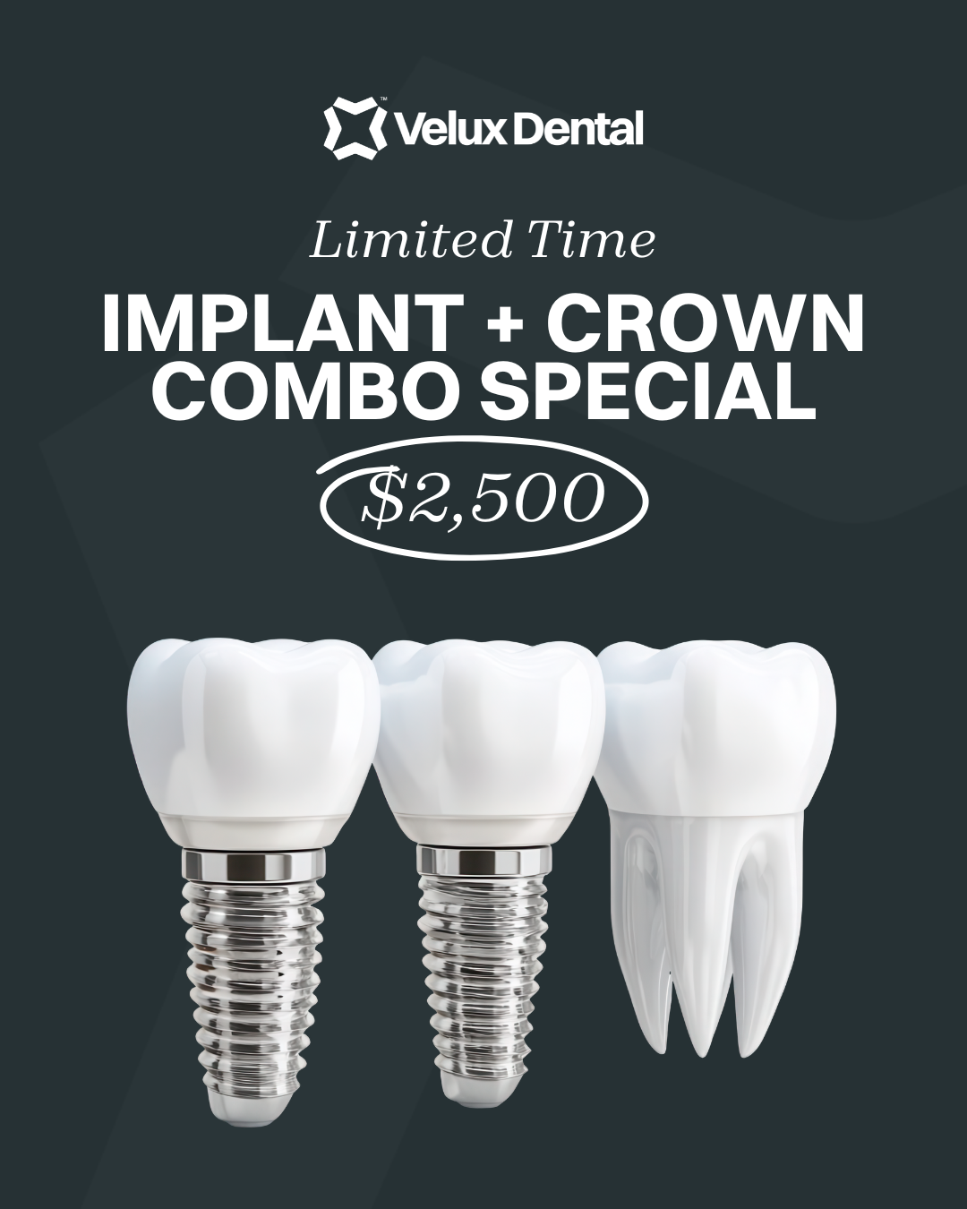 Implant + Abutment + Crown for just $2,499