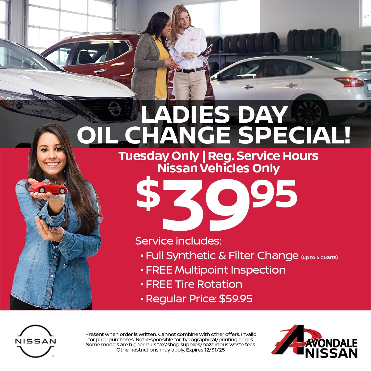 Are you a lady in need of an oil change? ๐ง Look no further! ๐ This Ladies Day oil change special is perfect for you! ๐ Click โBook Nowโ to schedule your oil change today.๐ง