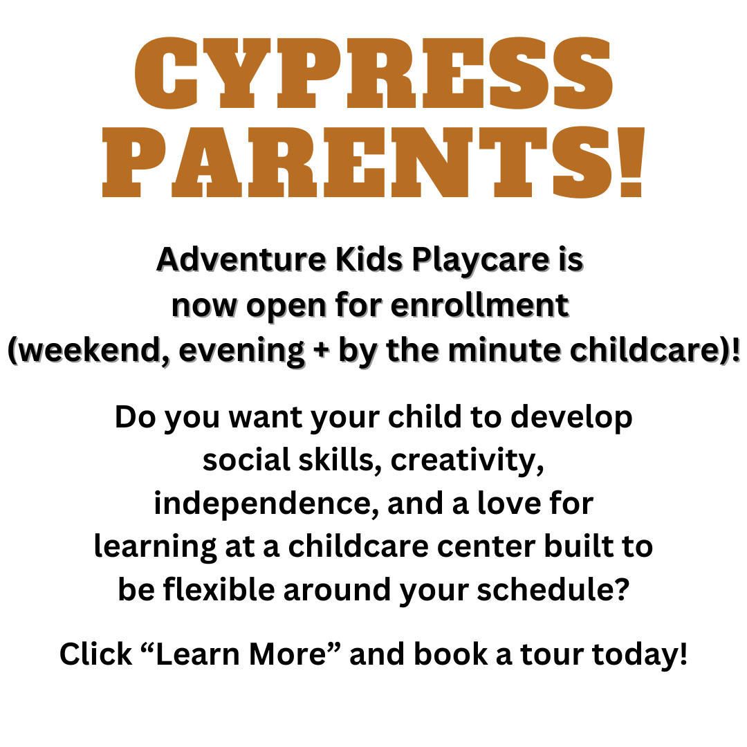 Working Moms of Cypress: Looking for childcare that fits with your schedule? Then listen up, because we've got you covered! Now I'm sure you remember all the family events and special date nights...