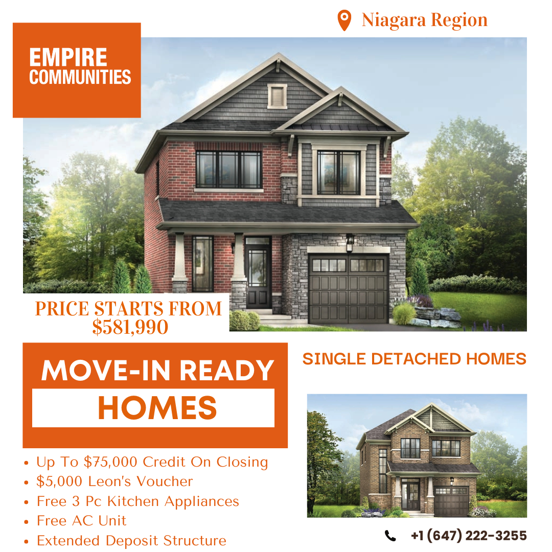 Detached homes under $600K in Ontario? They barely exist anymore. Except right here. Right now. Empire Communities has move-in ready single detached homes in the Niagara Region starting at $581,990....
