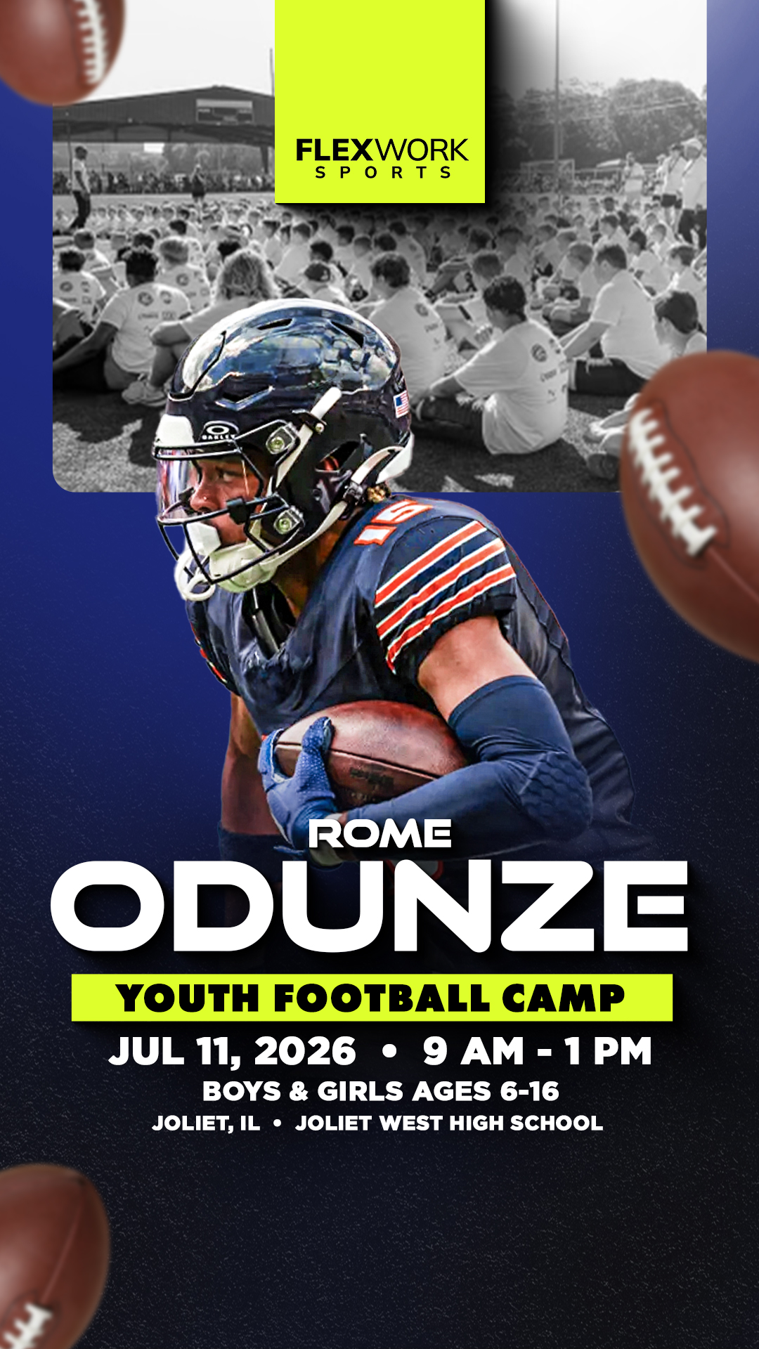 Excited to announce Chicago's Rome Odunze will be in Joliet to host a youth Football camp! Athletes ages 6-16 will: š Learn skills from Rome šø Get a pic with the star š Get Swag Join us on...