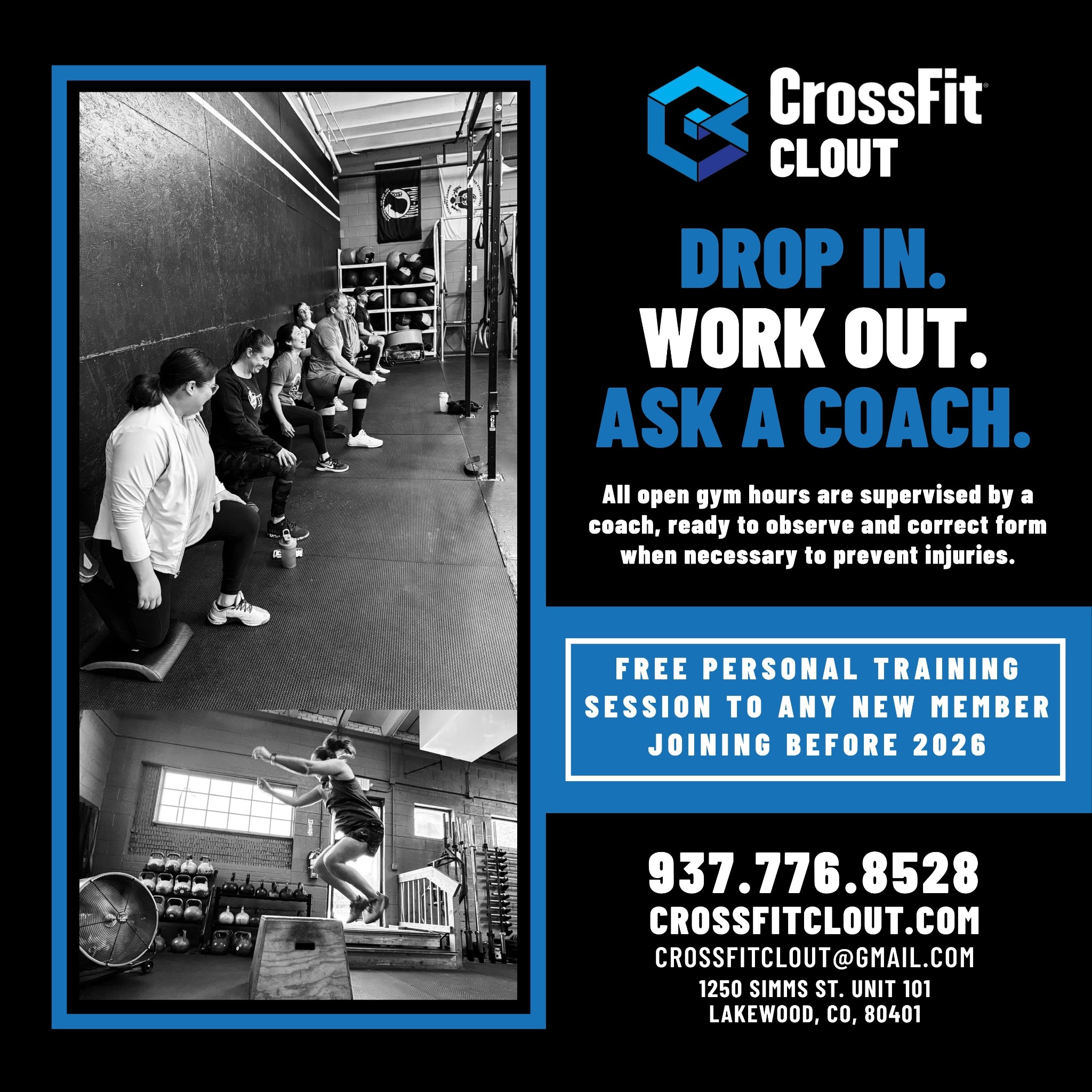 Drop in. Work out. Ask a coach. At CrossFit Clout, we're offering a free personal training session to any new member joining before 2026! Begin your health transformation and book with us today!