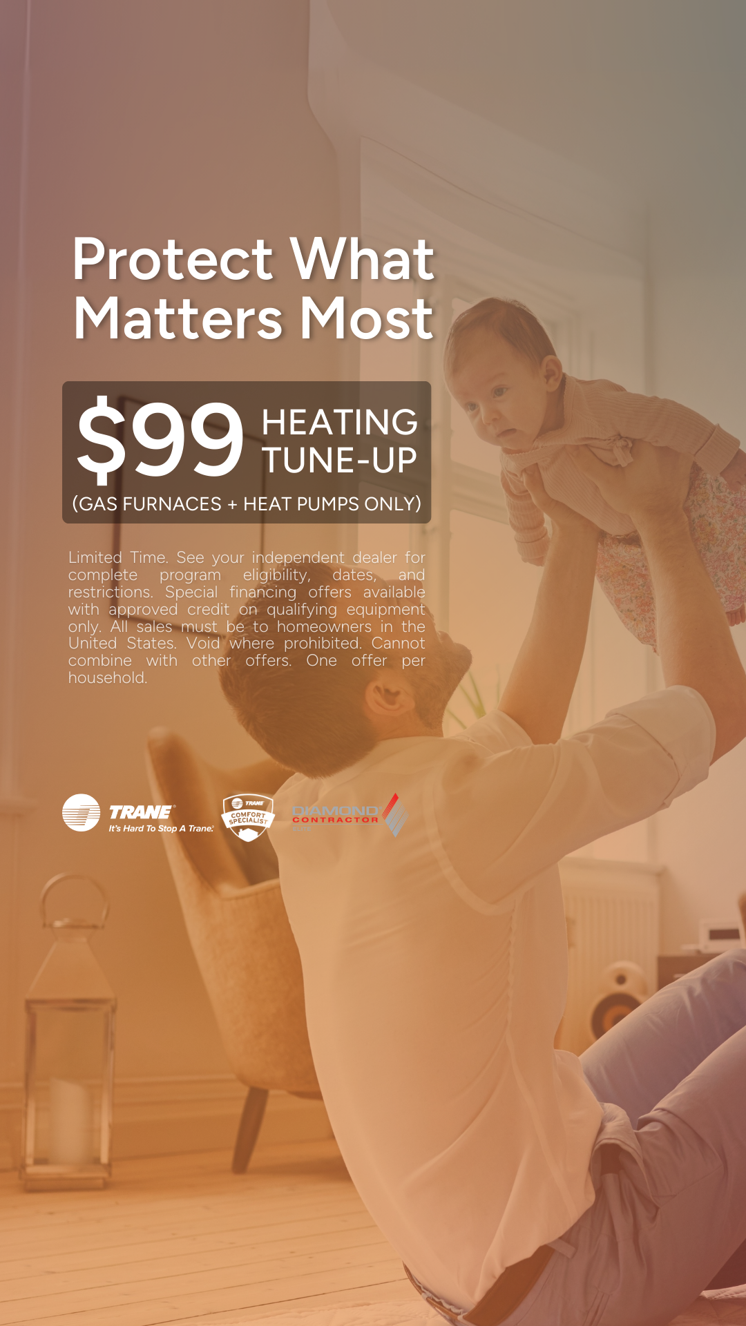 Protect your home comfort with a $99 heating tune-up. Gas furnaces and heat pumps only. Limited-time offer from Service First.