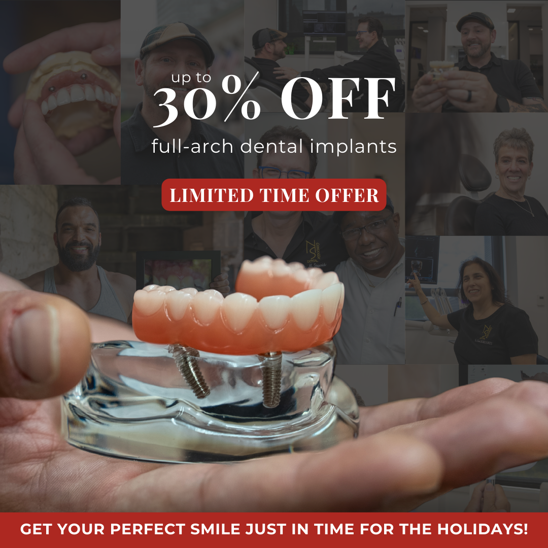 Give yourself the gift of a confident smile! This holiday, get 30% off full-arch dental implants and start your transformation.