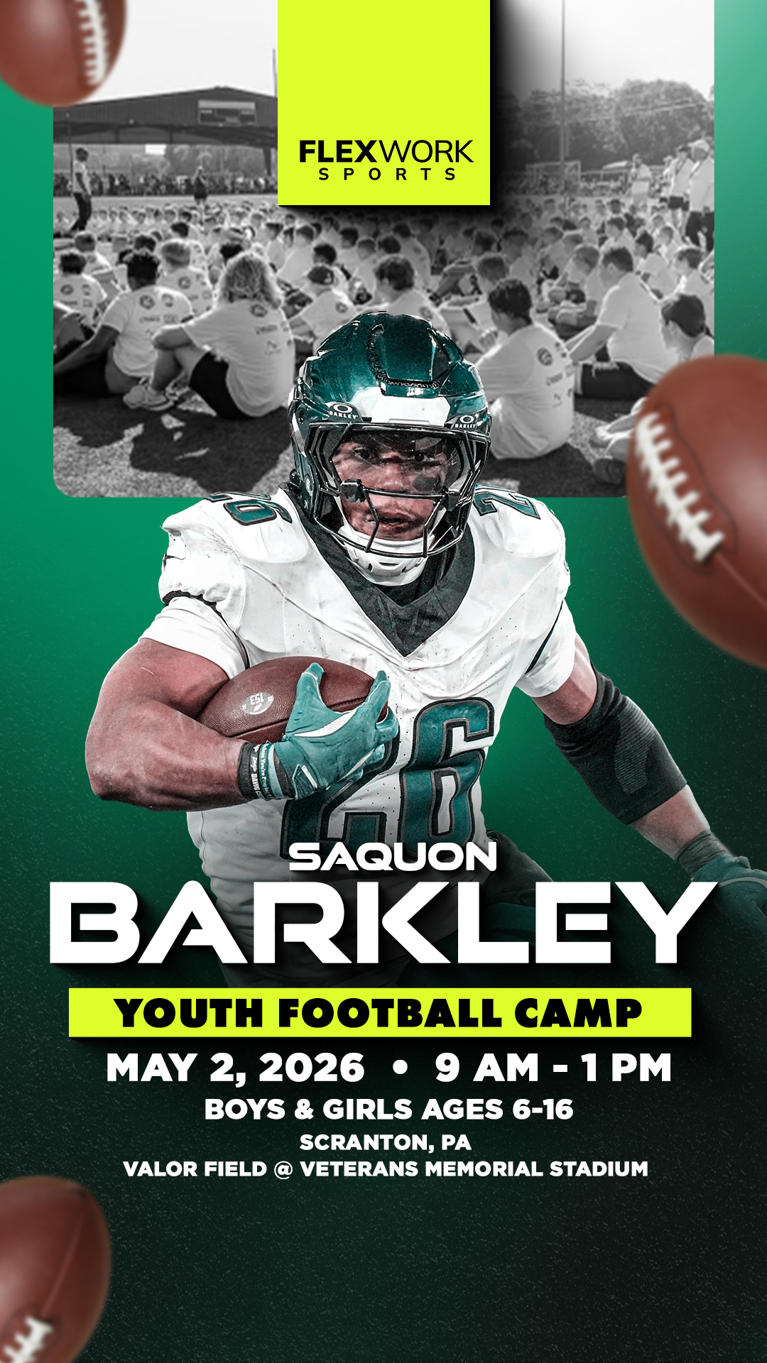 Excited to announce Saquon Barkley will be in Scranton to host a youth football camp! Athletes ages 6-16 will: πLearn skills from Saquon πΈ Get a pic with the star π Get swag Join us on...
